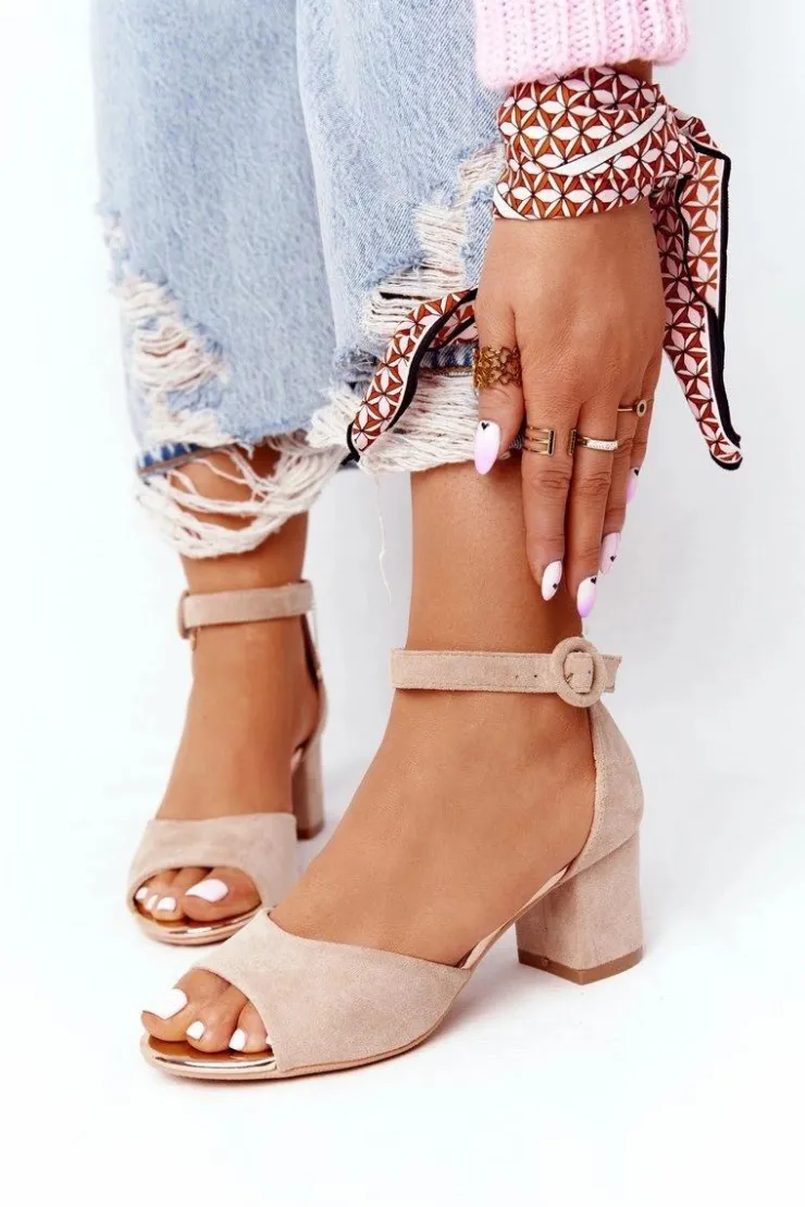 Buty damskie Vinceza Sandały Na Obcasie*Zamszowe Sandały Na Obcasie Vinceza 23-20100 Beżowe