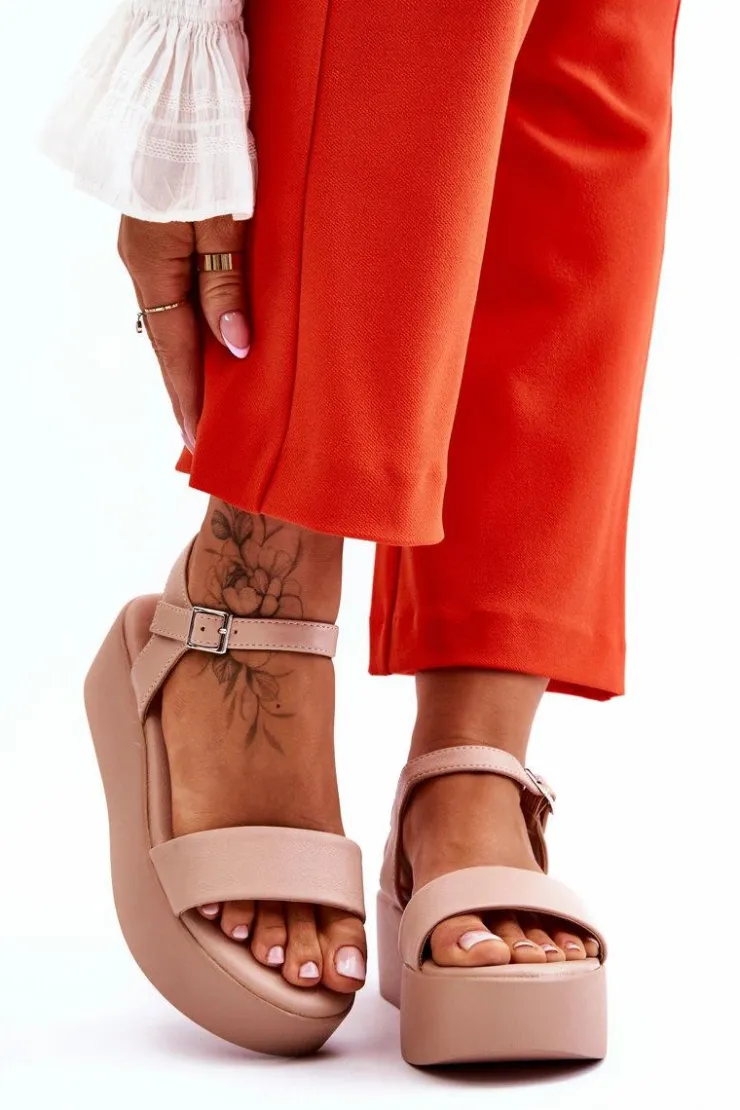 Świetne sandały wykonane z wysokiej jakości eko skóry. Posiadają zapinanie wokół kostki na klamrę. Wkładka została wykonana z miękkiej eko skóry. Sandały posiadają odkryte palce i piętę. Osadzone na masywnej platformie z tworzywa sztucznego. Te sandałki to idealny model na upalne dni! Przy wyborze rozmiaru prosimy sugerować się tabelą rozmiarów.
