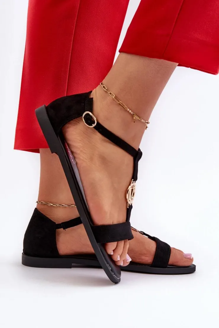 Buty damskie Vinceza Sandały Płaskie*Płaskie Sandały Damskie Ze Złotą Ozdobą Vinceza 17321 Czarne