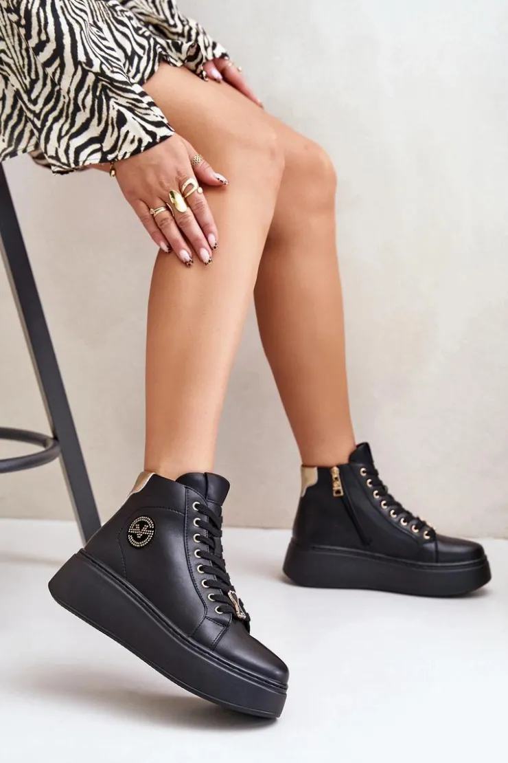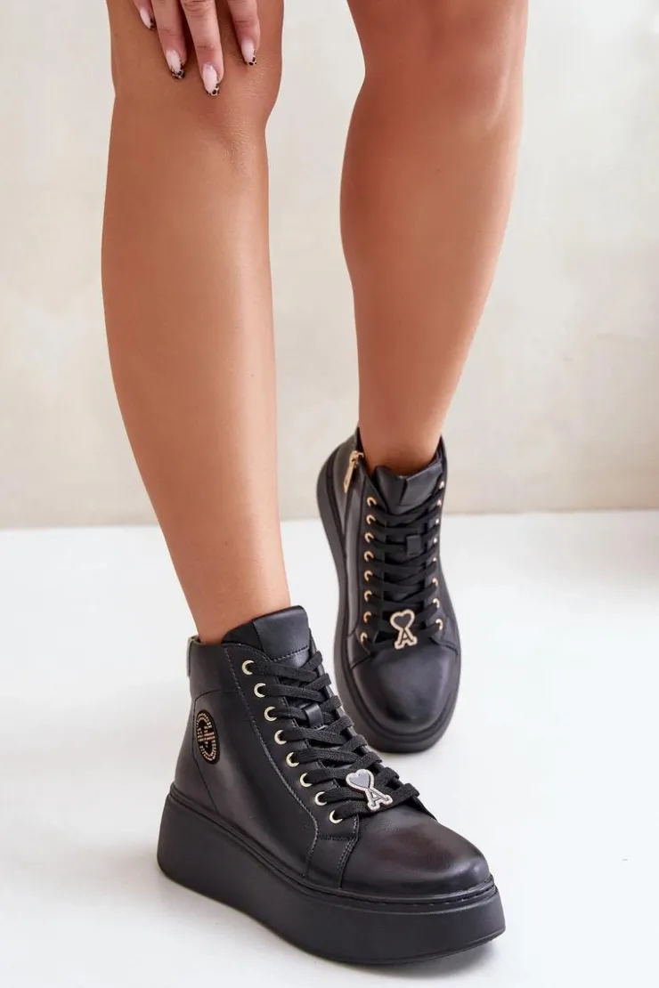 Sneakersy damskie od marki Vinceza. Wykonane z naturalnej skóry, gwarantują trwałość i komfort noszenia. Osadzone na masywnej platformie, która wysmukli sylwetkę. Model ten posiada zapięcie na zamek oraz sznurowanie z przypinką. Noski zaokrąglone. Środek ocieplony kocem obuwniczym. Modny fason, który świetnie dopełni Twoje jesienne stylizacje! Przy wyborze rozmiaru prosimy kierować się tabelą rozmiarów.