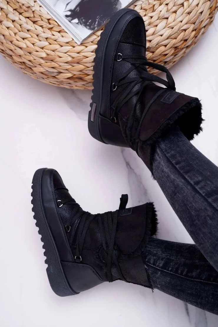Buty damskie Vinceza Śniegowce Damskie*Damskie Botki Śniegowce Ocieplane Futerkiem Czarne Fereni