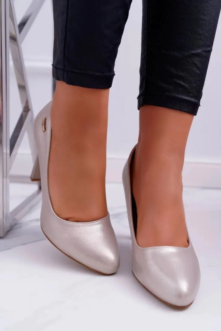 Buty Sergio Leone Czółenka Na Słupku|Czółenka Klasyczne*Czółenka Damskie Na Słupku Sergio Leone 1457 Złote Campbell