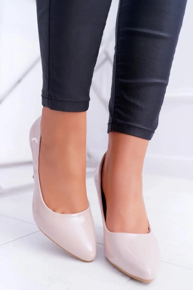 Buty Sergio Leone Szpilki Lakierowane|Czółenka Klasyczne*Szpilki damskie Sergio Leone Lakierowane Beżowe Greca