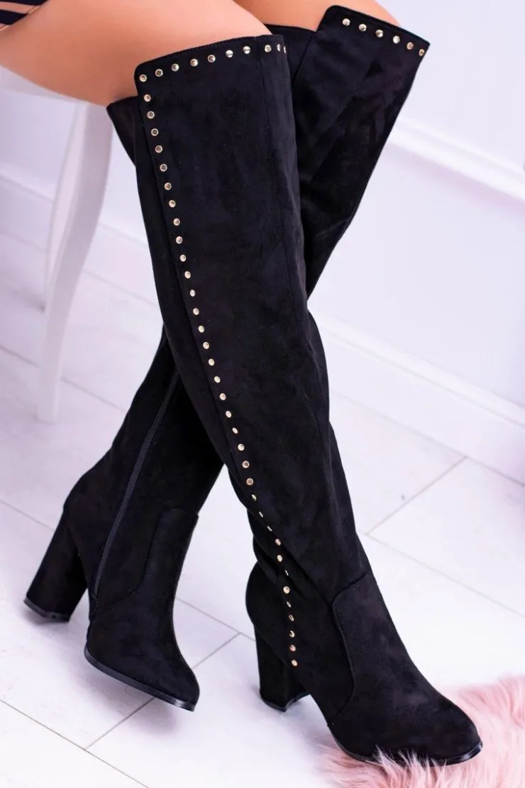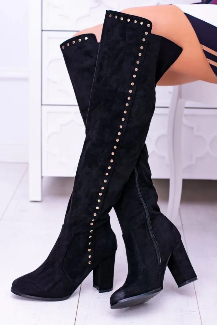 Chłodne dni już niedługo dlatego już teraz spraw sobie wyśmienite kozaki! Zamszowy materiał to hit tego sezonu! Subtelny słupek wydłuży i wysmukli Twoją sylwetkę! Zakładanie ułatwi wszyty zamek na wysokości kostki, a niesamowitego seksapilu nadaje im to, że sięgają aż powyżej kolana, dodatkowo otulając niemal całe Twoje nogi. Nie czekaj dłużej, kup teraz!