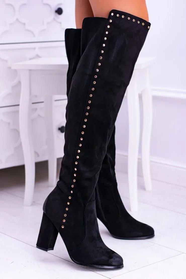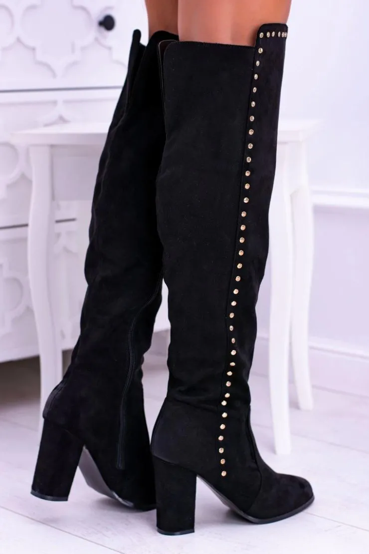 Clearance Boto Czarne Zamszowe Kozaki Muszkieterki Portoso