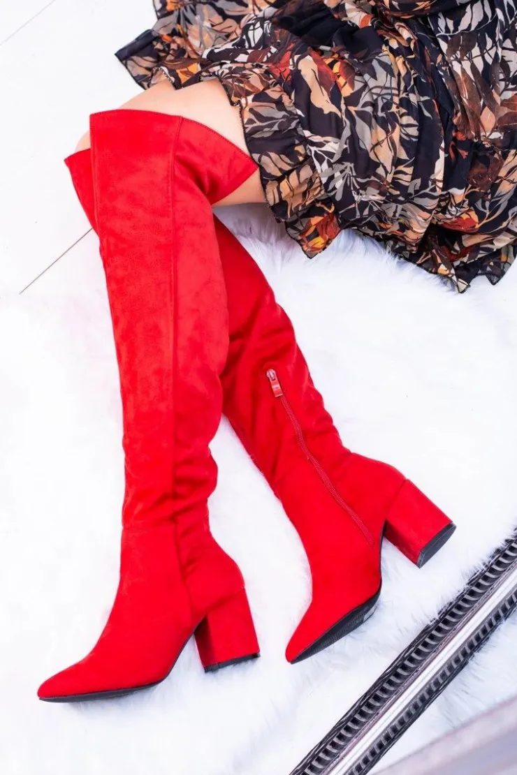 Clearance Boto Czerwone Damskie Kozaki Zamszowe Za Kolano Feluni