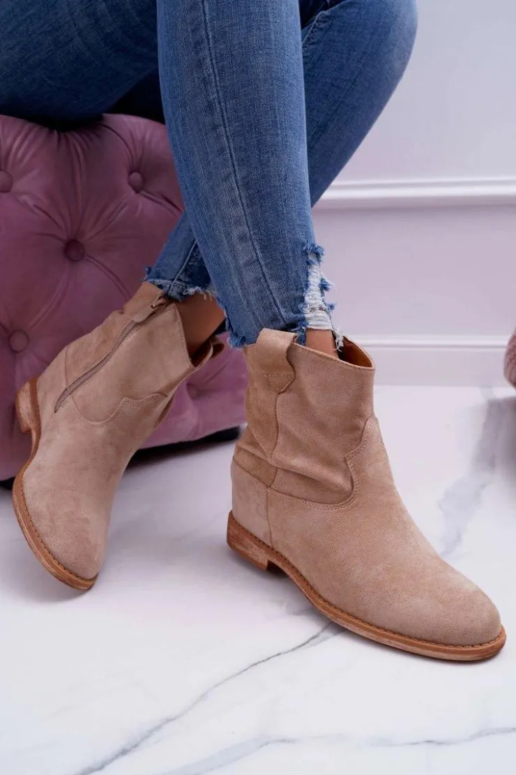 Clearance Boto Damskie Botki Saszki Na Koturnie Beżowe Ellen