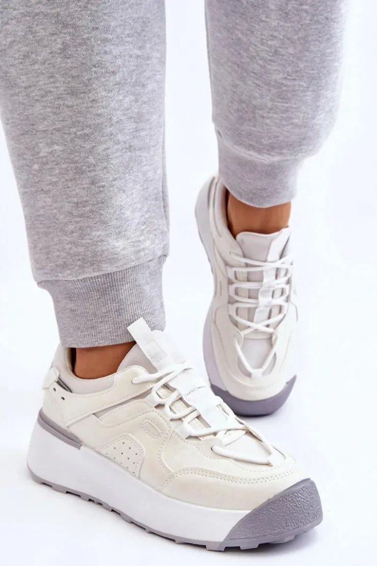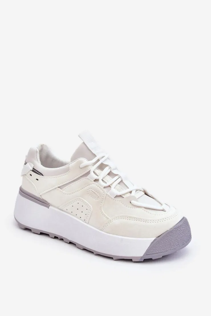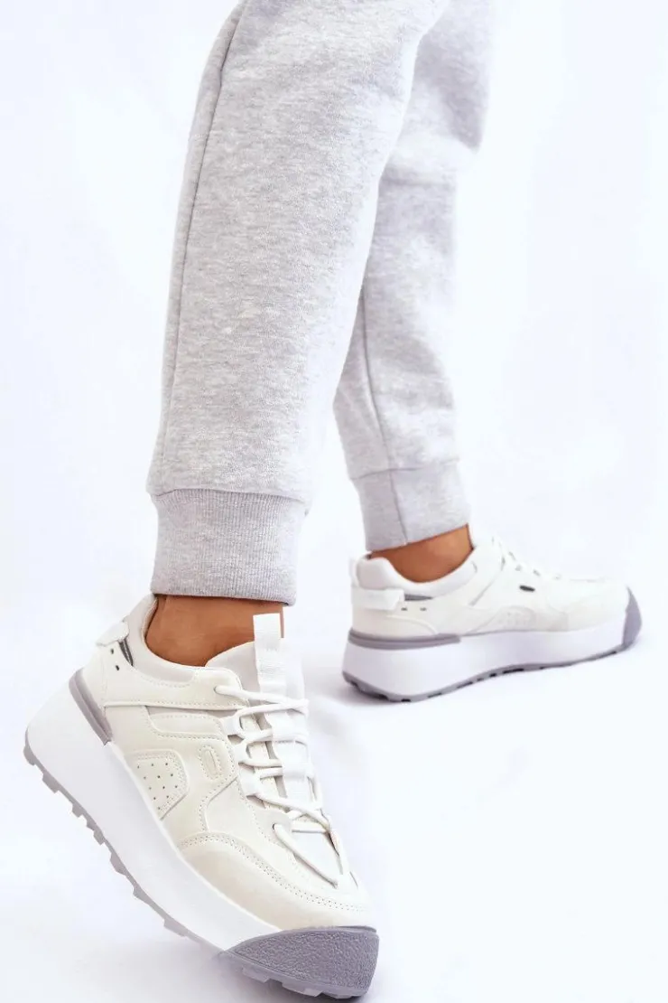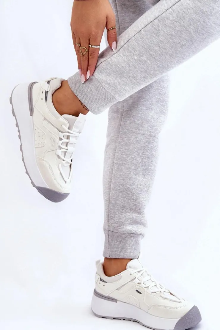 Świetne, damskie buty sportowe zostały osadzone na masywnej platformie, która delikatnie uniesie Twoją sylwetkę. Model ten posiada klasyczne sznurowanie. Dodatkowo zapiętek jest usztywniany, a z tyłu cholewki znajduje się odblaskowy element. Wkładka w tych butach jest materiałowa oraz wymienna. Przy wyborze rozmiaru prosimy kierować się tabelą rozmiarów.