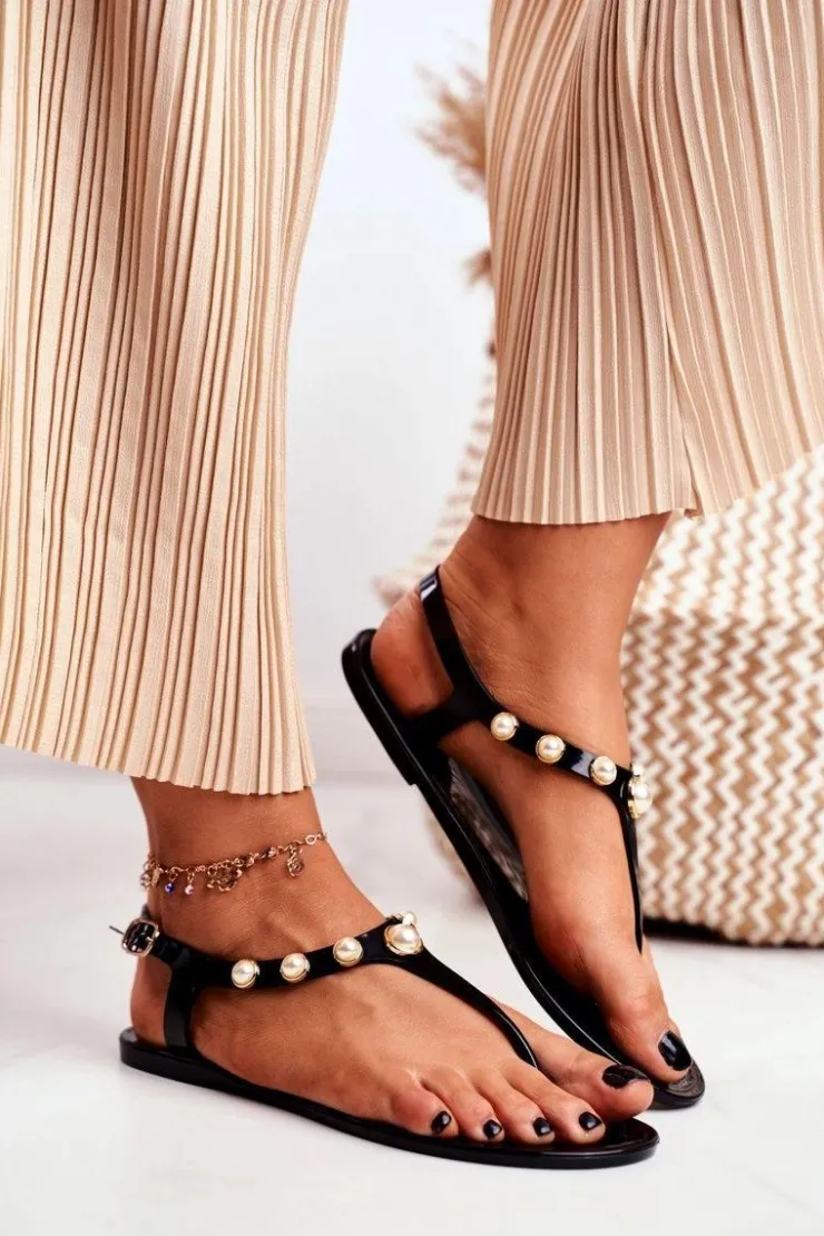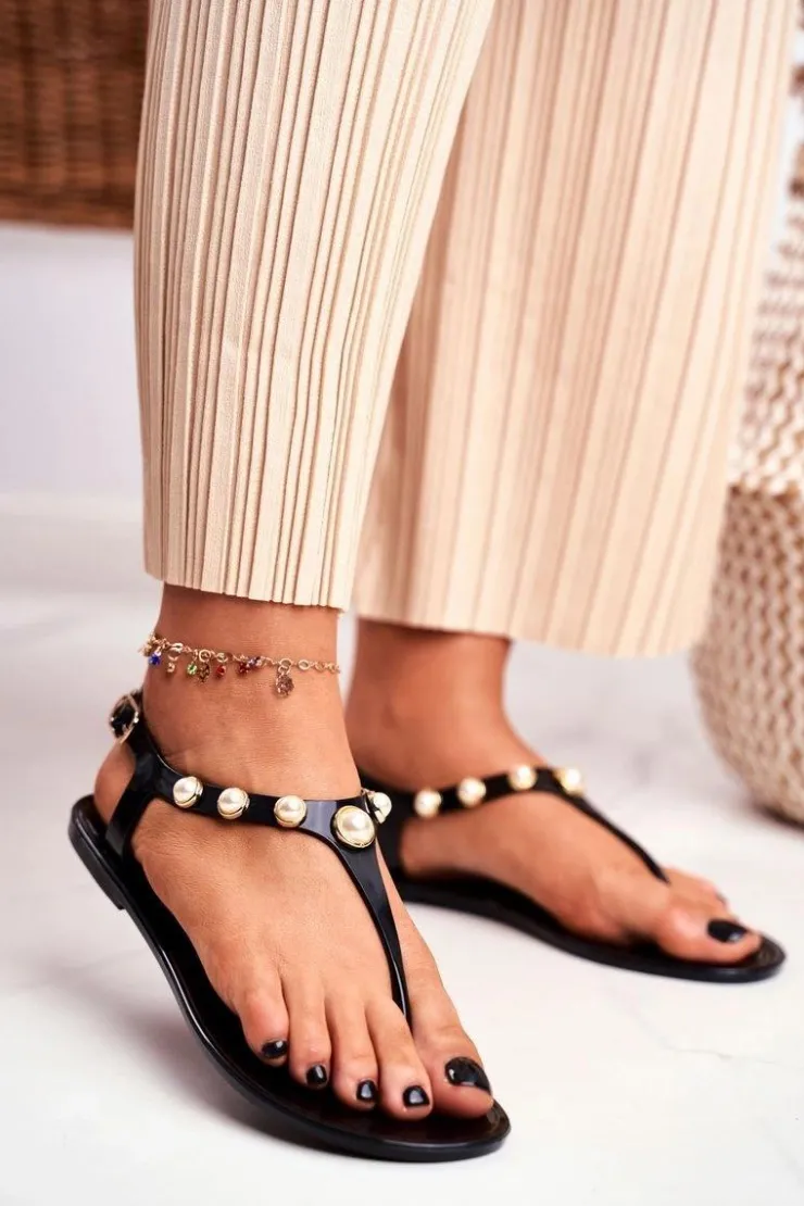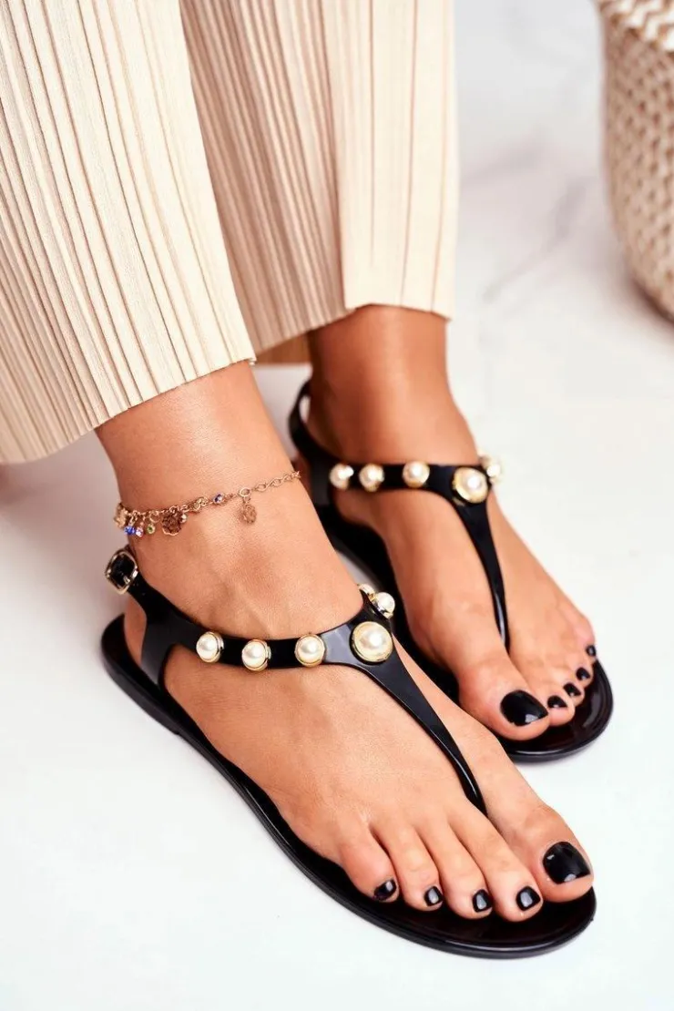 Clearance Boto Damskie Gumowe Sandałki Czarne Japonki Perełki Denise
