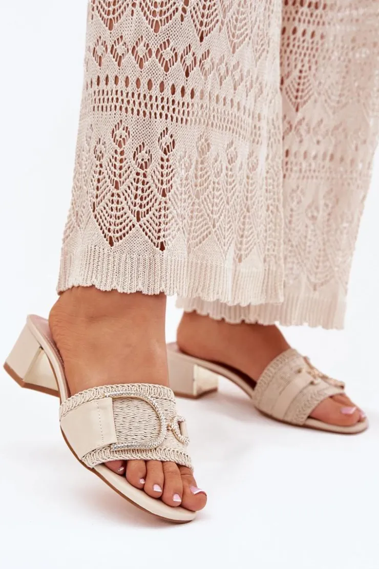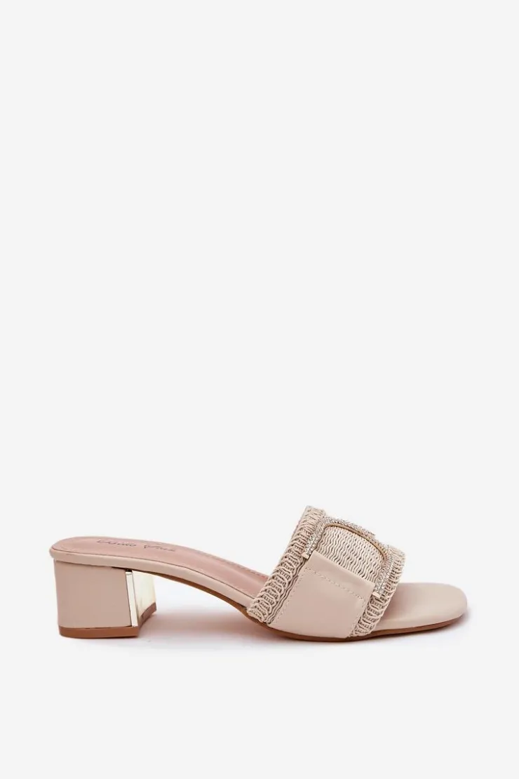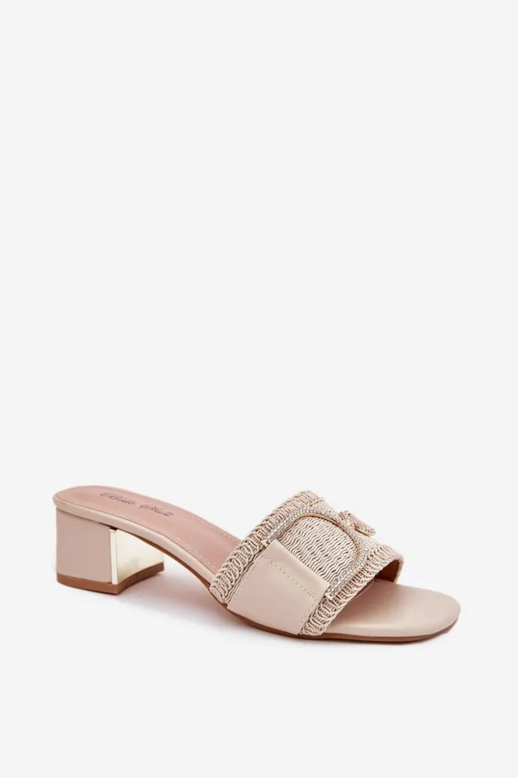 Klapki damskie na obcasie typu klocek to elegancka propozycja na ciepłe dni. Z przodu znajdują się subtelne ozdobne detale z cyrkoniami, które nadają im wyjątkowego blasku. Eko skórzana wkładka zapewnia komfort przez cały dzień. Idealne do letnich stylizacji, łączą wygodę z modnym wyglądem, doskonale sprawdzają się zarówno na co dzień, jak i na specjalne wyjścia. Przy wyborze rozmiaru prosimy kierować się tabelą rozmiarów.