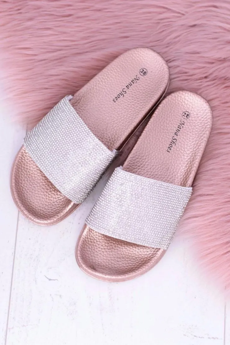Clearance Boto Damskie Klapki Z Cyrkoniami MadameCristal Różowe