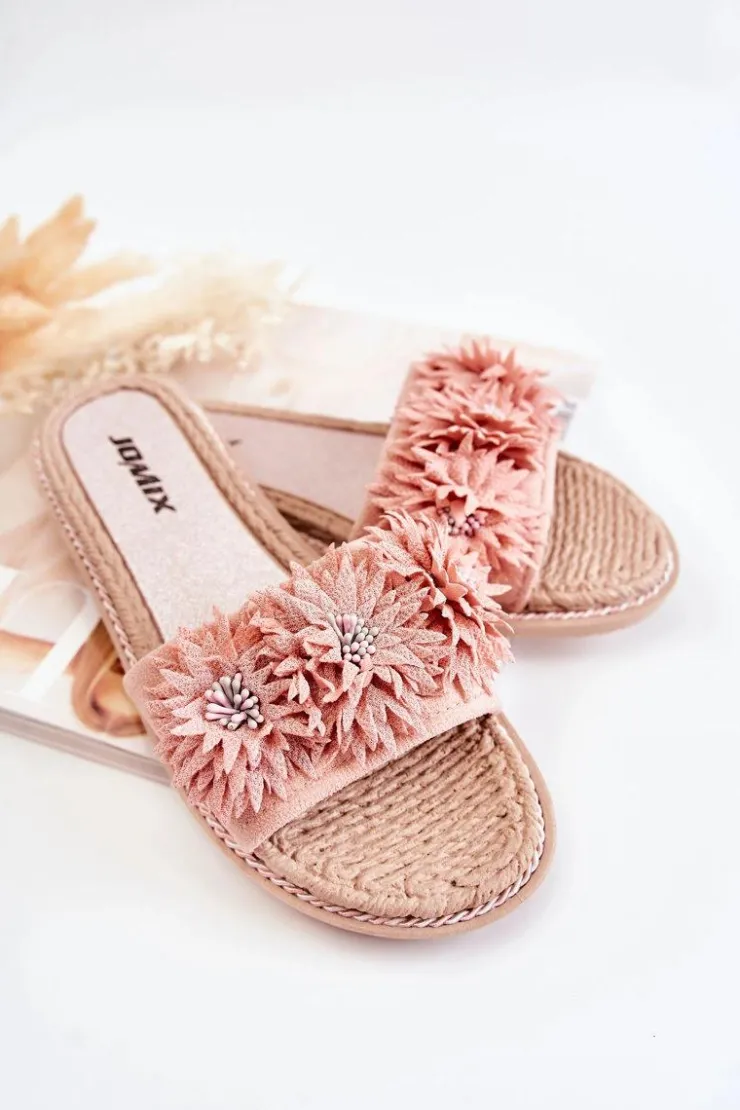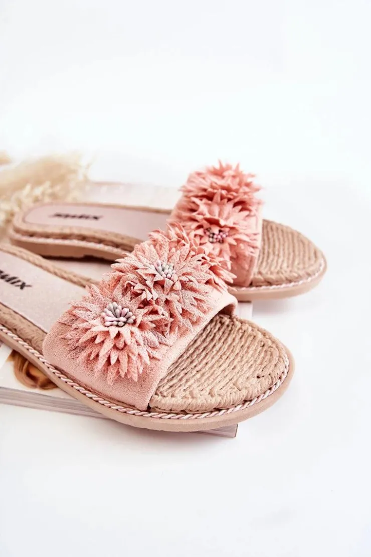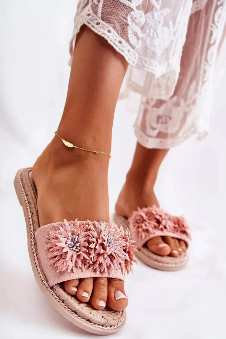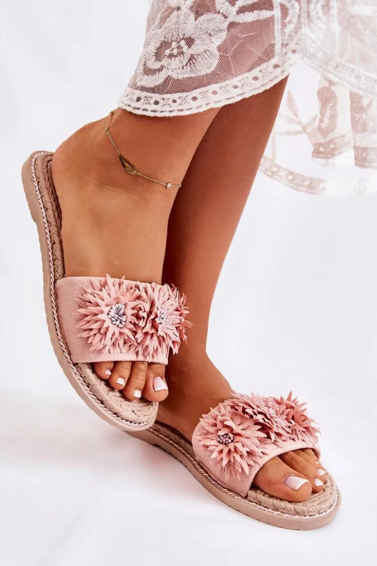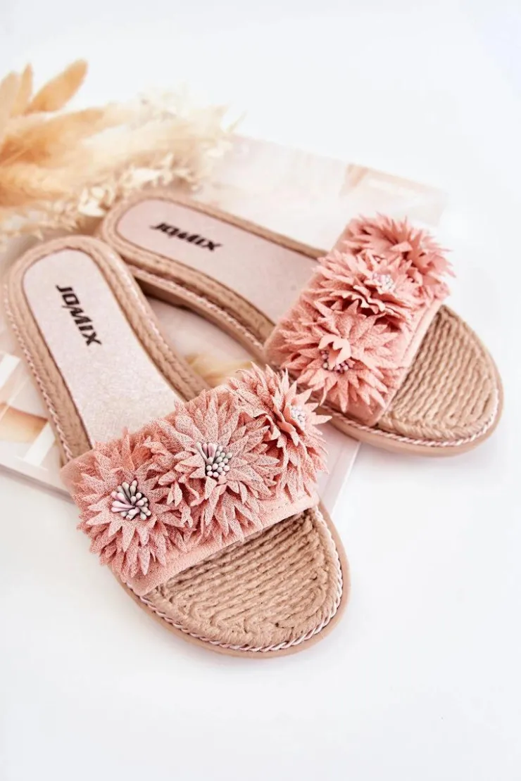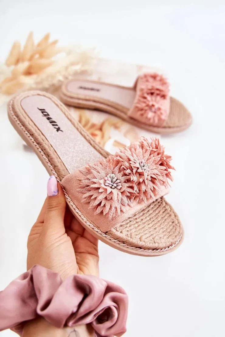 Clearance Boto Damskie Klapki Z Materiałowymi Kwiatami Różowe Susana