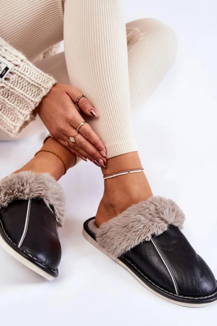 Damskie papcie zostały wykonane z wierzchu eko skóry z obszyciem z eko futerka. Dodatkowo posiadają przeszycia na przodzie. Miękka wkładka jest również ocieplana i zapewni komfort i wygodę podczas użytkowania. Podeszwa została wykonana z elastycznego tworzywa. Model klasyczny, wsuwany. Koniecznie powinnaś je mieć! Przy wyborze rozmiaru prosimy sugerować się tabelą rozmiarów.