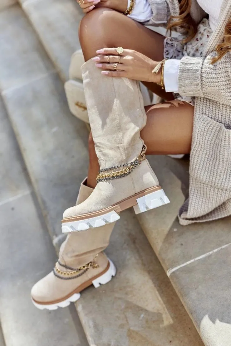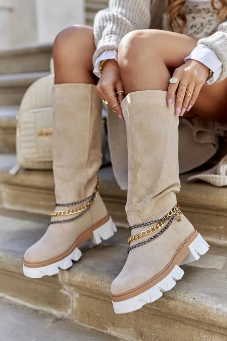 Kozaki do kolana wykonane z zamszowej skóry ekologicznej. Wnętrze ocieplane kocem obuwniczym. Gruba, antypoślizgowa podeszwa zapewnia bezpieczeństwo na każdej nawierzchni oraz dodatkowo izoluje przed zimnem. Przy wyborze rozmiarów prosimy sugerować się tabelą rozmiarów.