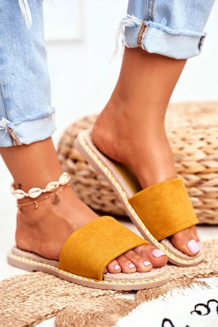 Clearance Boto Klapki Damskie Klasyczne Zamszowe Żółte Look At Me
