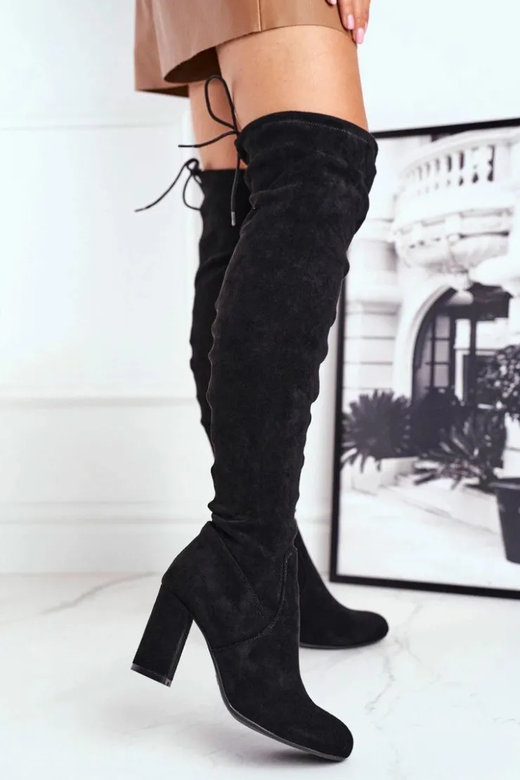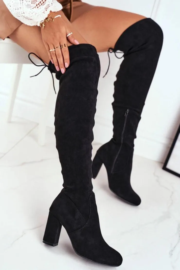 Clearance Boto Kozaki Damskie Zamszowe Na Słupku Czarne Highso