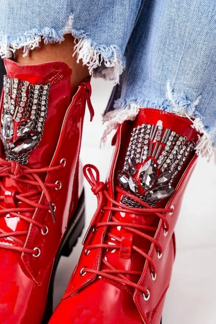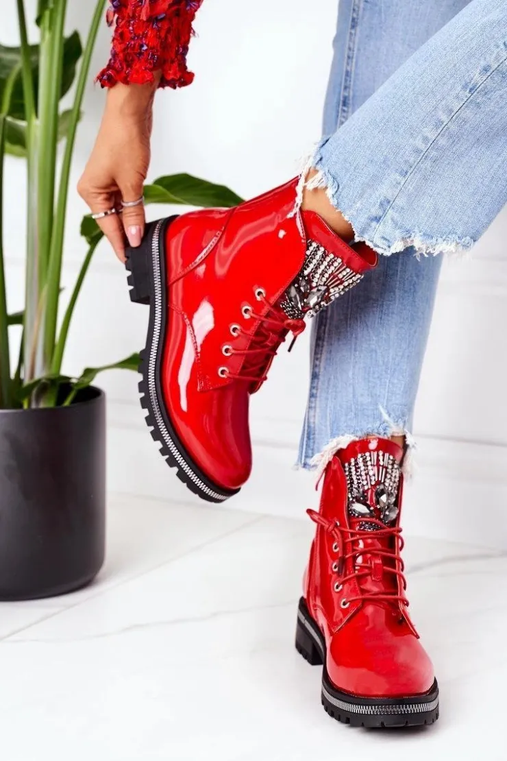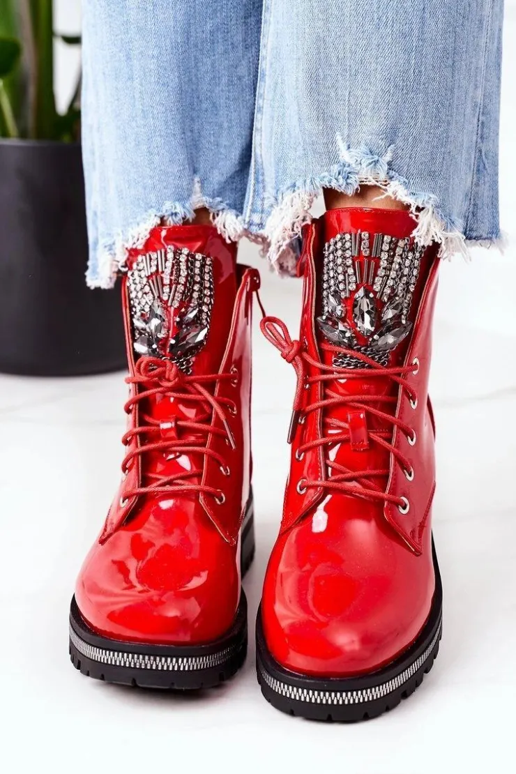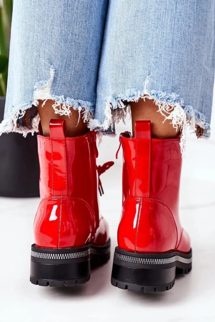 Wyjątkowe botki damskie wykonane z lakierowanej eko skóry. Workery są ocieplone miłym w dotyku kocem obuwniczym. Przy wyborze rozmiaru prosimy sugerować się tabelą rozmiarów.