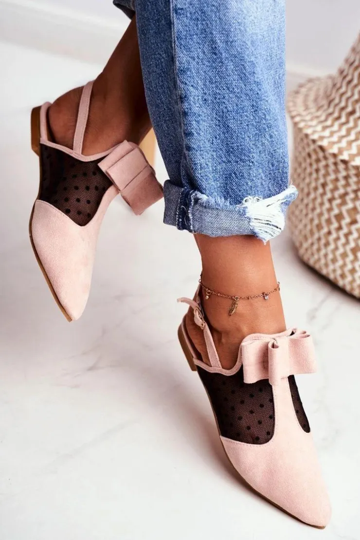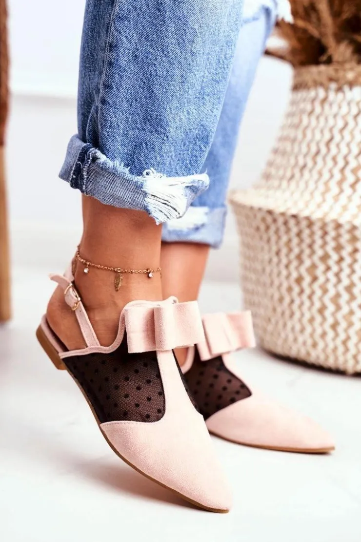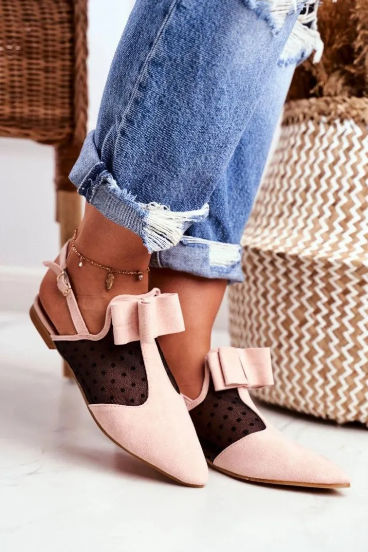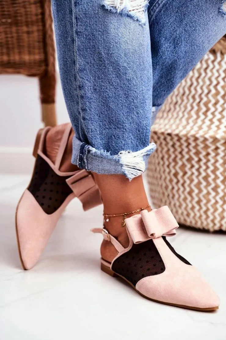 Clearance Boto Lu Boo Damskie Baleriny Kokardki Mule Różowe Domino