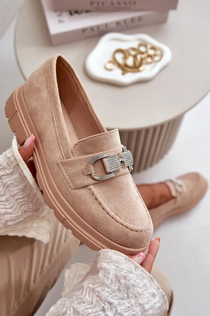 Damskie mokasyny wykonane z eko zamszu, które łączą styl i wygodę. Klasyczny fason wzbogacony o dekoracyjny pasek z przodu, który dodaje elegancji i unikalnego charakteru. Idealne zarówno do casualowych, jak i bardziej formalnych stylizacji, te mokasyny są świetnym wyborem na co dzień. Przy wyborze rozmiaru prosimy sugerować się tabelą rozmiarów.