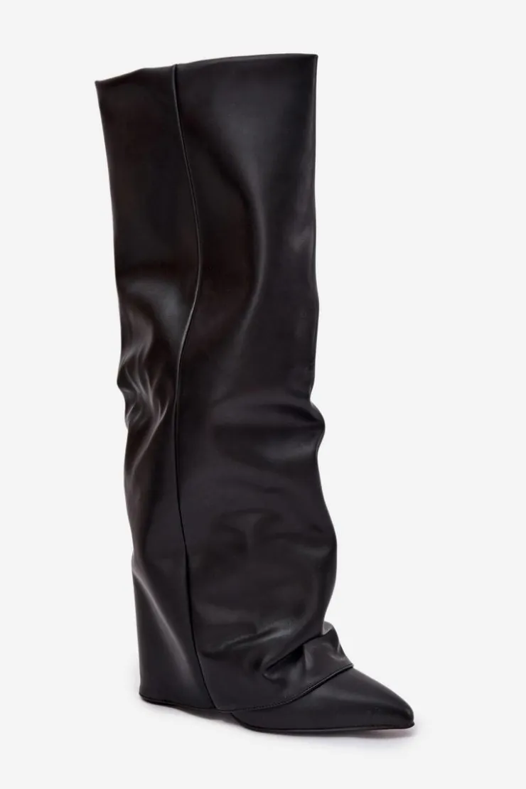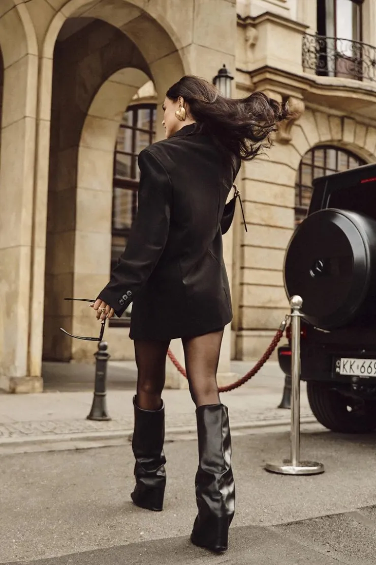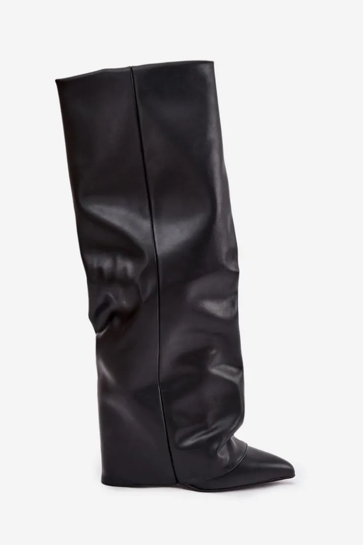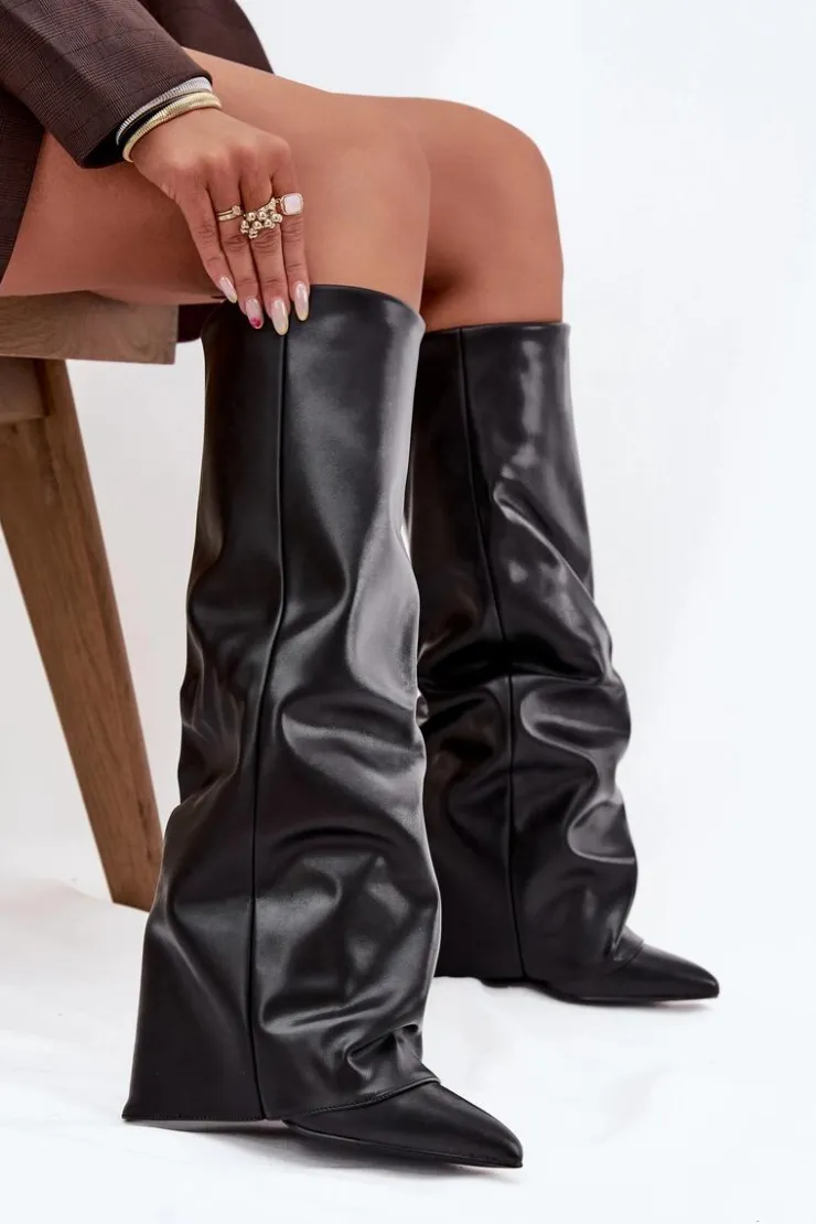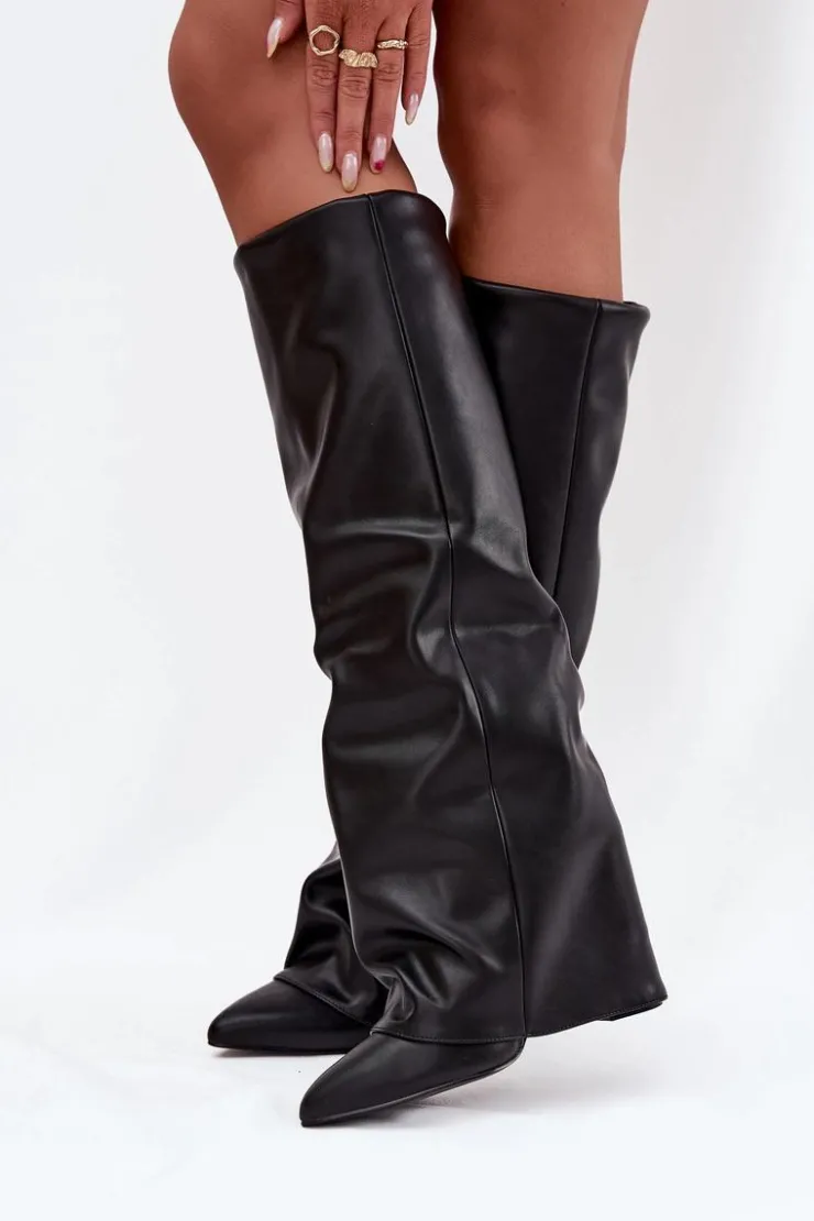 Kozaki damskie z wywiniętą cholewką to prawdziwy must-have na nadchodzący sezon jesienno-zimowy! Wsuwane i osadzone na stabilnym obcasie typu słupek, gwarantują wygodę i pewny krok. Ocieplenie zapewnia komfort w chłodniejsze dni, a wywinięta cholewka, nachodząca na obcas, dodaje im oryginalnego charakteru. Szpiczaste noski podkreślają kobiecy styl, dzięki czemu kozaki świetnie sprawdzą się w efektownych, zimowych stylizacjach. Przy wyborze rozmiaru prosimy sugerować się tabelą rozmiarów.