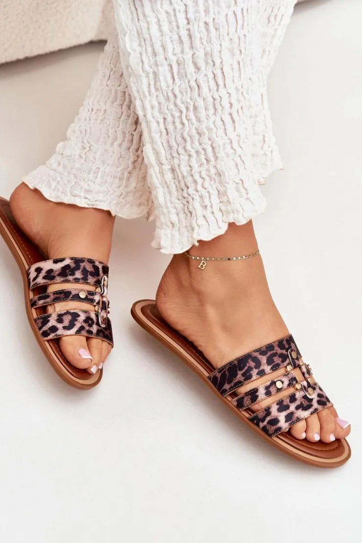 Klapki damskie płaskie o klasycznym fasonie to uniwersalna opcja do sukienek i spodni. Złoty detal łączący paseczki dodaje im eleganckiego charakteru, sprawiając, że doskonale komponują się z różnymi stylizacjami. Wygodne i stylowe, będą świetnym wyborem na ciepłe dni. Przy wyborze rozmiaru prosimy sugerować się tabelą rozmiarów.