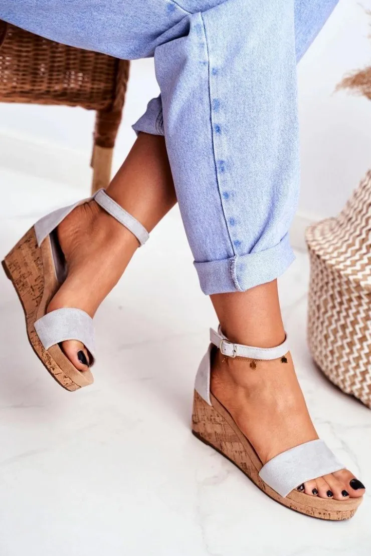 Clearance Boto Sandałki Damskie Na Koturnie Szare MarryMe