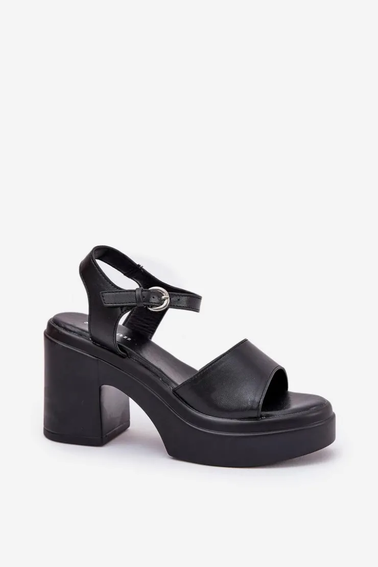 Sandały damskie wykonane ze skóry ekologicznej. Platforma oraz masywny obcas w postaci słupka dodają pewności kroku, jednocześnie zapewniając stabilność. Zapinane wokół kostki na sprzączkę z regulowanym paskiem. Doskonałe na wiele różnych okazji! Przy wyborze rozmiaru prosimy sugerować się tabelą rozmiarów.