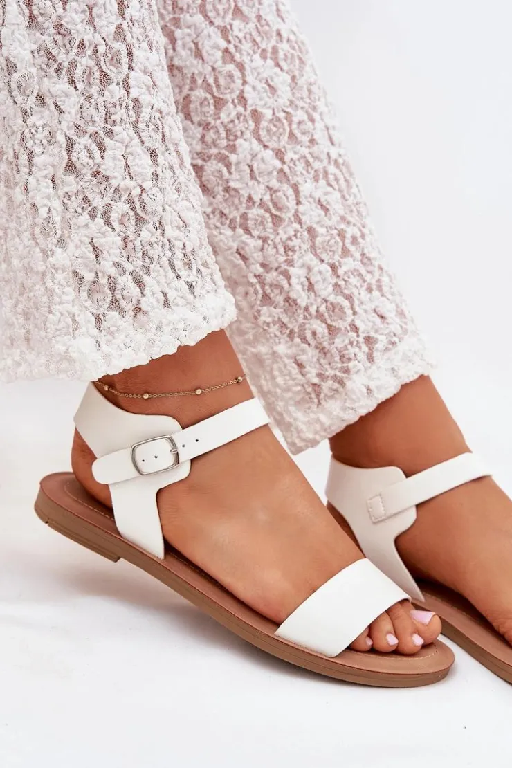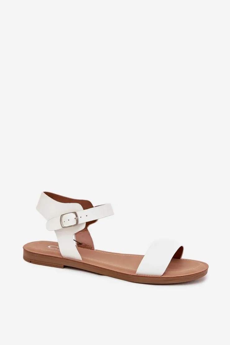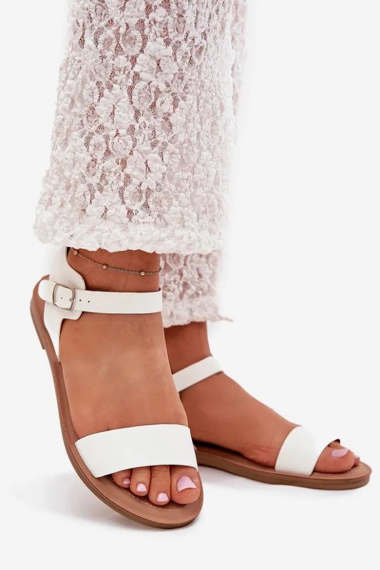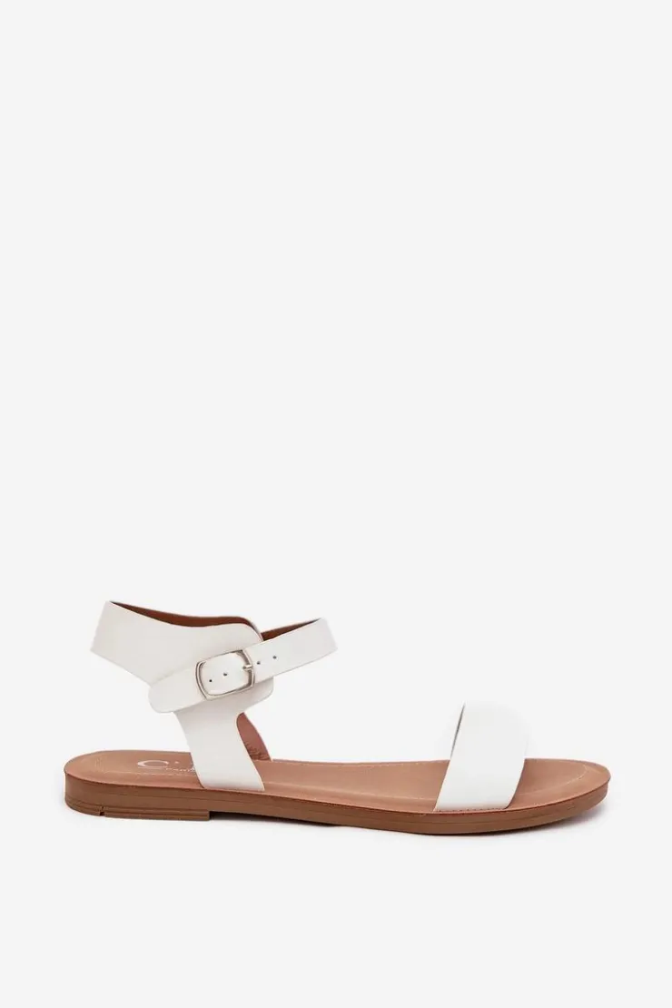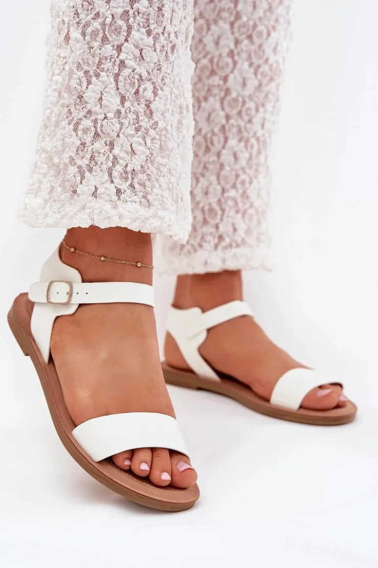 Clearance Boto Sandały Damskie Na Płaskim Obcasie Eko Skórzane Białe Kivara