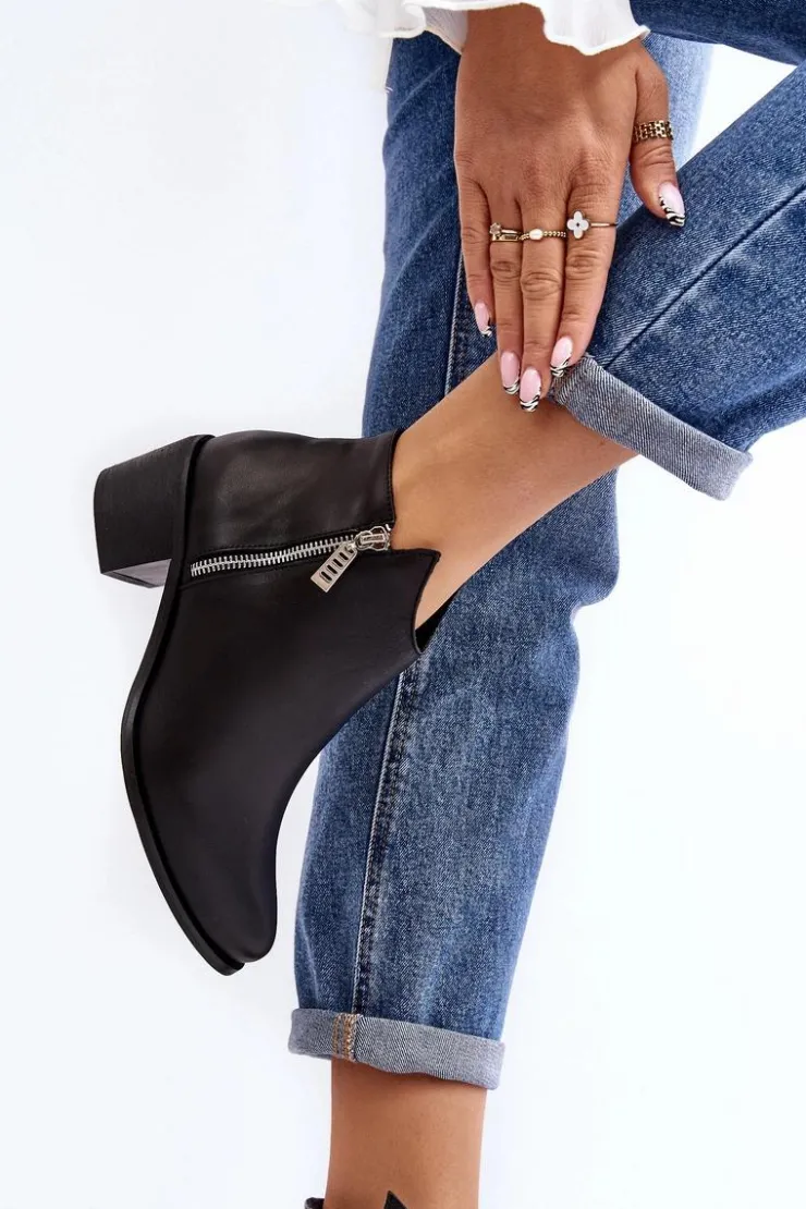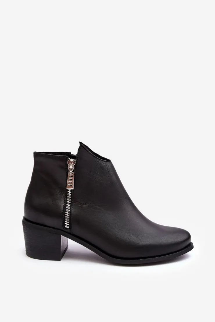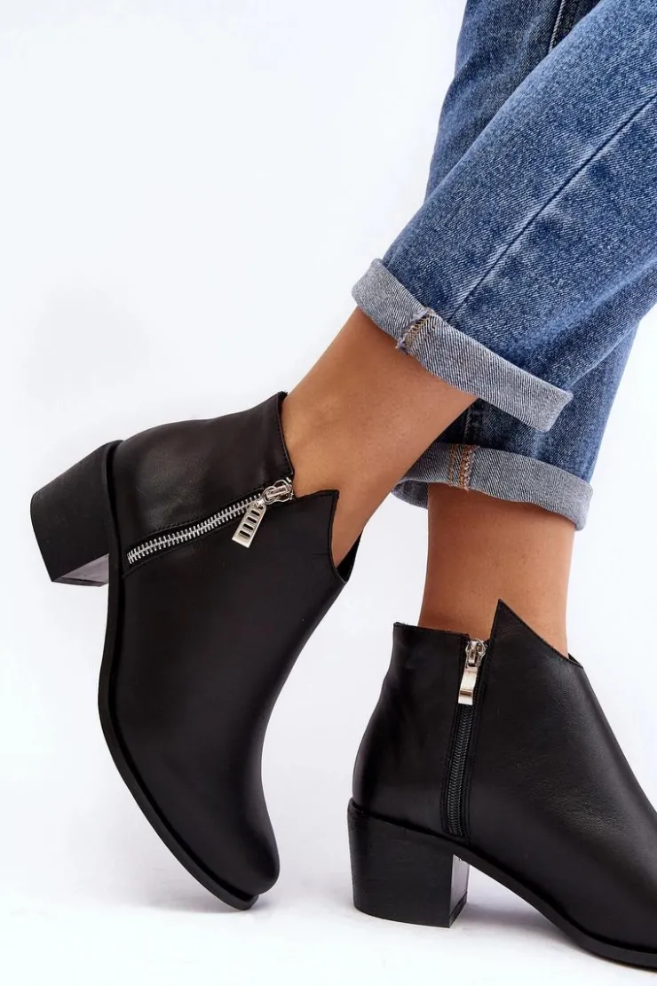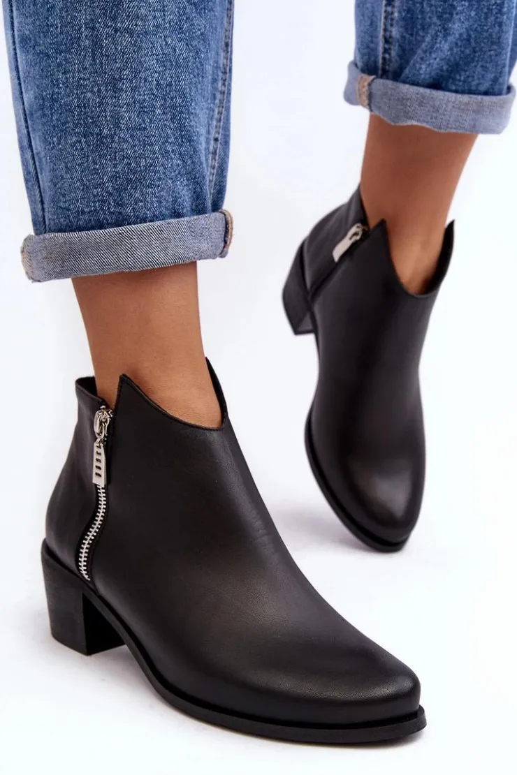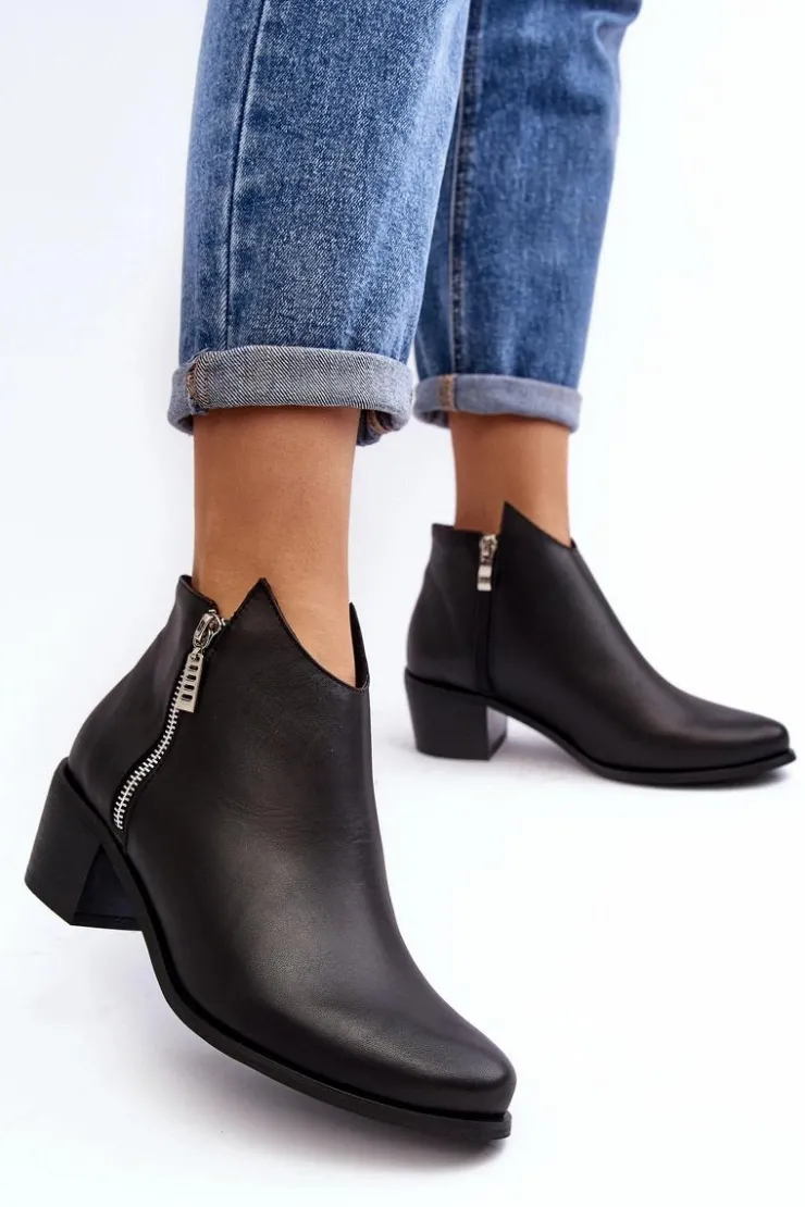 Botki damskie wykonane z naturalnej skóry. Ocieplone wewnątrz kocem obuwniczym. Obcas w postaci niskiego słupka. Cholewka lekko za kostkę z suwakami. Usztywniany zapiętek zapewni stabilizację stopy. Noski w migdał. Ten klasyczny fason powinien znaleźć się w Twojej szafie! Przy wyborze rozmiaru prosimy sugerować się tabelą rozmiarów.