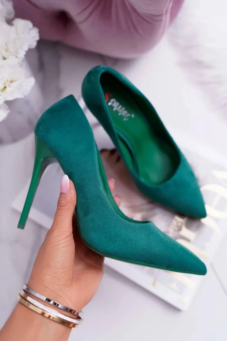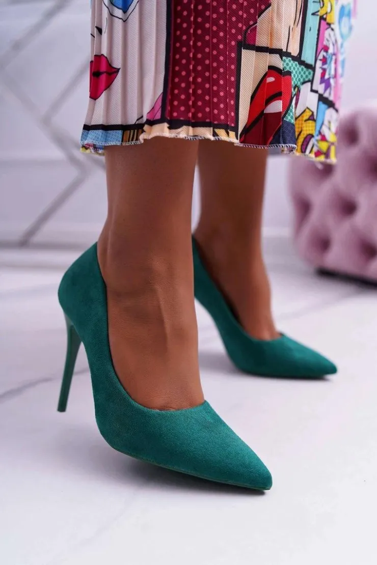 Clearance Boto Szpilki Damskie Zamszowe Zielone Yanna