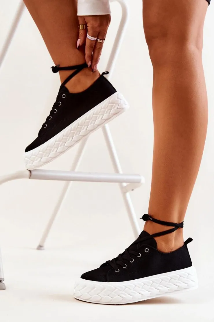 Damskie tenisówki na masywnej platformie pasują do wielu stylizacji. Wykonane z tkaniny. Posiadają materiałową wkładkę. Gumowa platforma jest przyozdobiona pięknym warkoczem. Świetnie sprawdzą się zarówno do spodni jak i spódnic. Wyraź siebie poprzez swój styl i kup te świetne tenisówki już dziś! Przy wyborze rozmiaru prosimy sugerować się tabelą rozmiarów.
