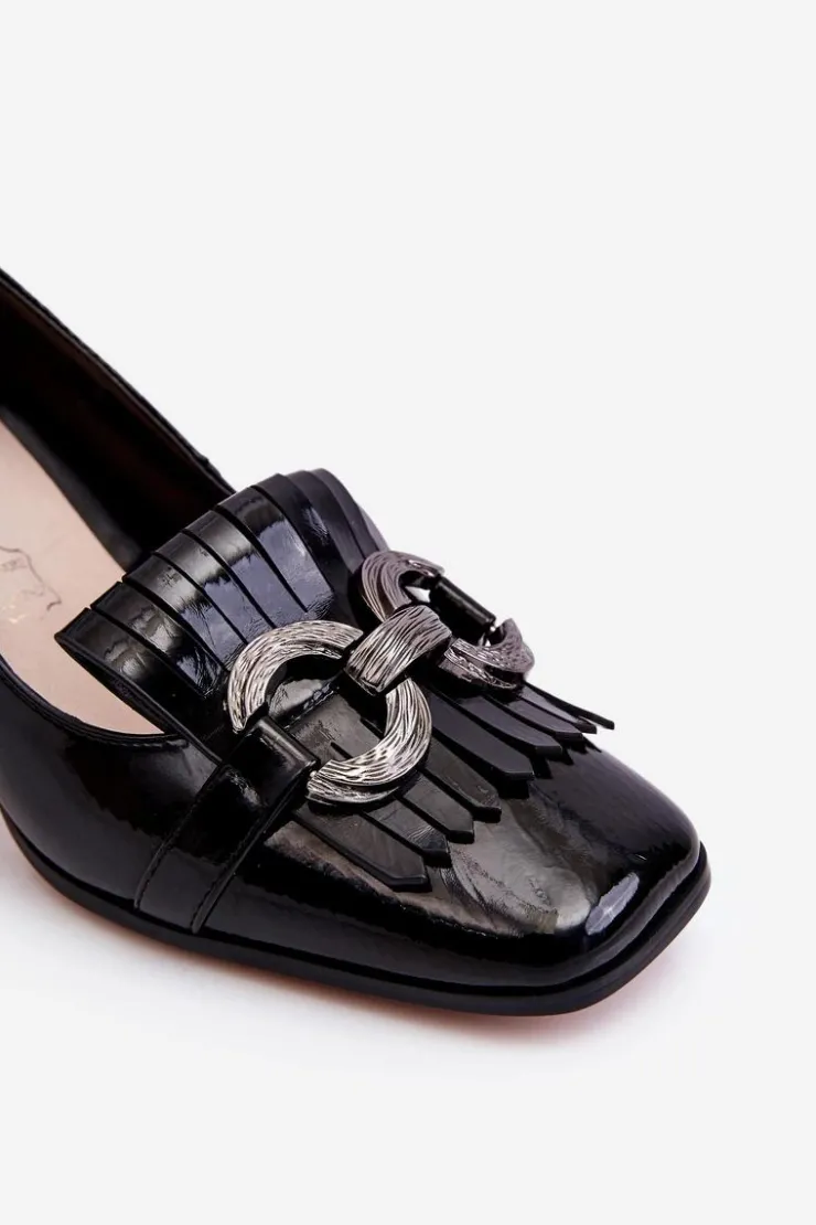 Czółenka zostały wykonane z eko skóry. Posiadają miękką wkładkę, która została wykonana z naturalnej skóry. Osadzone na masywnym obcasie w postaci słupka. Efektowne ozdoby sprawiają, że buty wyglądają niesamowicie! Z pewnością wykorzystasz je do wielu stylizacji. Koniecznie sprawdź pozostałe czółenka dostępne w naszej ofercie! Przy wyborze rozmiaru prosimy sugerować się tabelą rozmiarów.