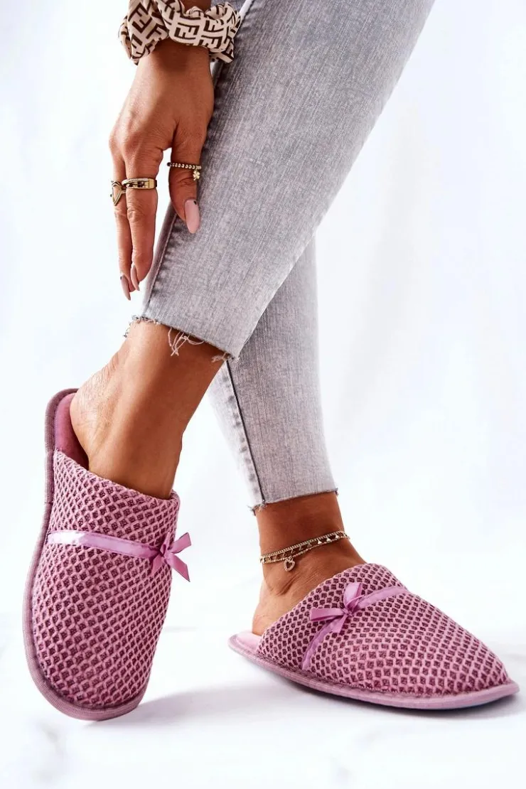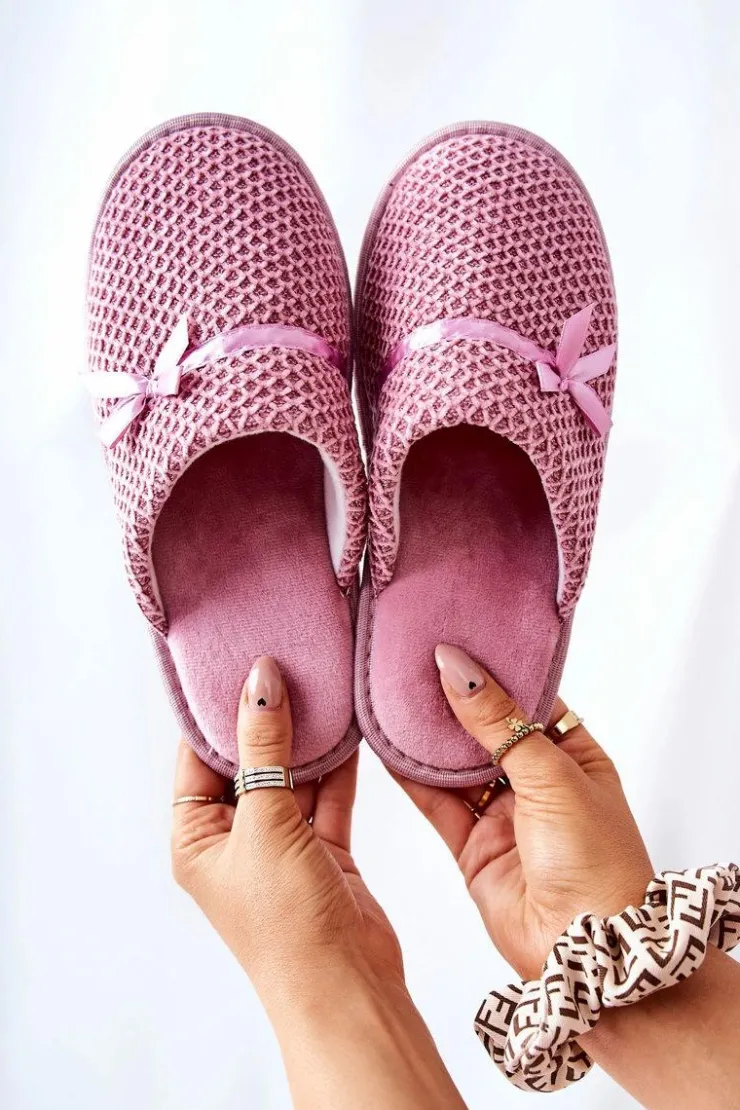 Clearance Evento Damskie Papcie Z Kokardką Różowe Evira
