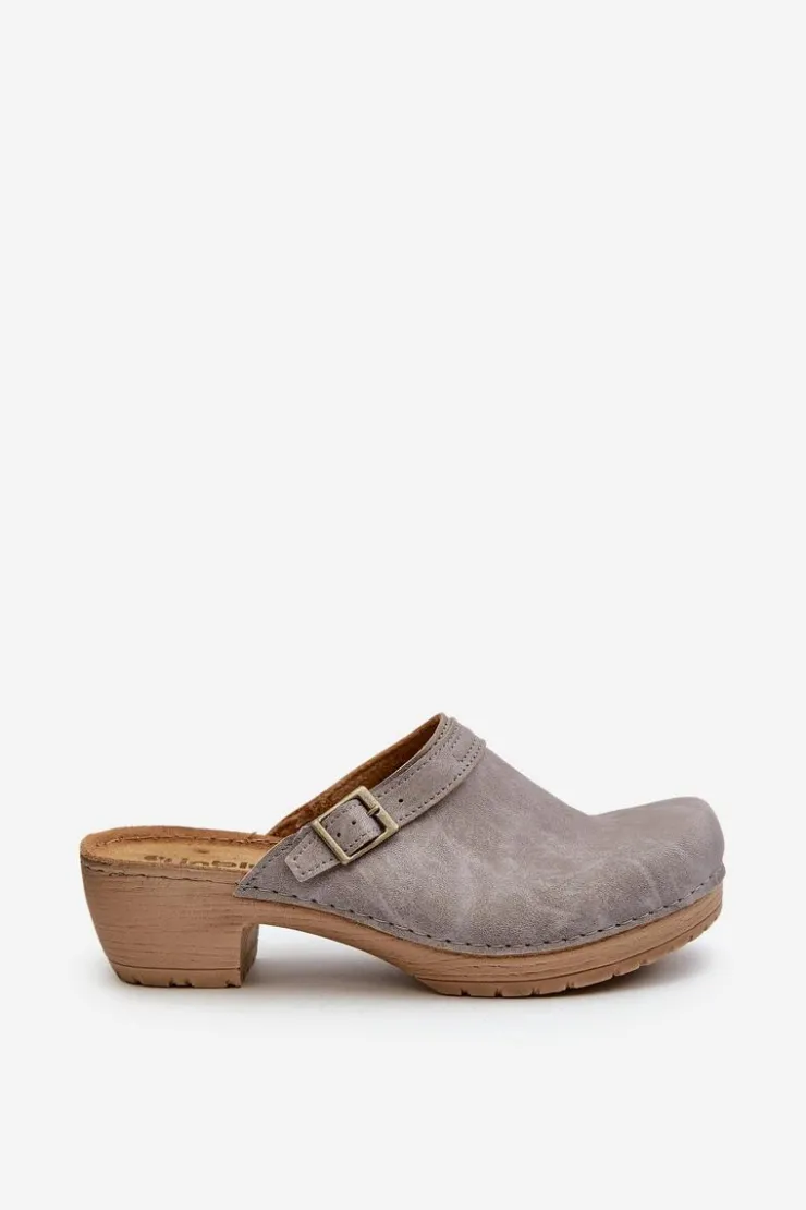Klapki damskie od marki INBLU. Wykonane z wysokiej jakości skóry ekologicznej. Osadzone na niskim obcasie. Ozdobione paseczkiem z klamrą. Wkładka COMFORT ANATOMICO jest profilowana, dostosowana do kształtu anatomicznego stopy, wykonana z miękkiej, naturalnej skóry. Spód wykonany z lekkiego i elastycznego tworzywa – zapewnia sprężystość i bardzo dobre przenoszenie obciążeń na podłoże. Przy wyborze rozmiaru prosimy sugerować się tabelą rozmiarów.