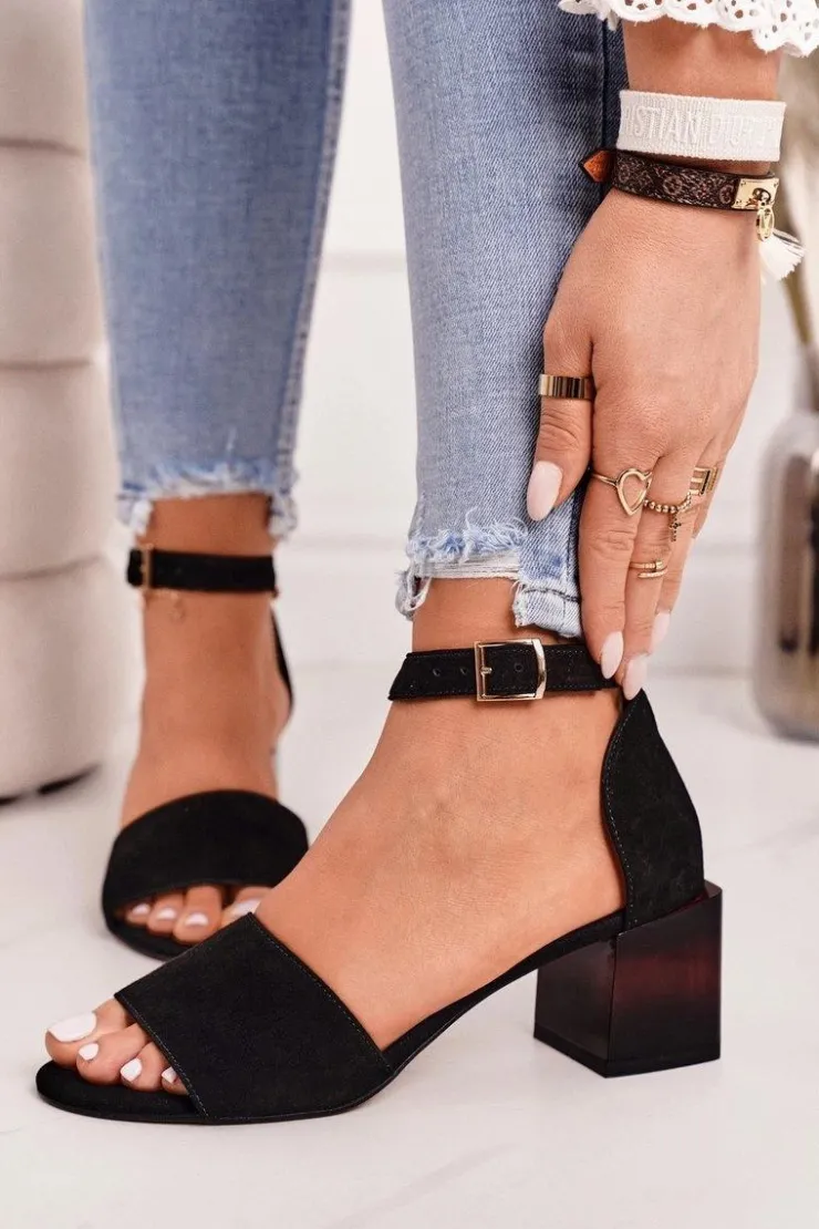 Clearance Laura Messi Zamszowe Sandały Na Obcasie 2285 Czarne
