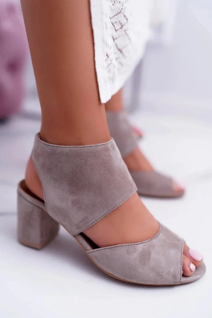 Clearance Maciejka Skórzane Damskie Sandały Na Słupku Beż 04038-04