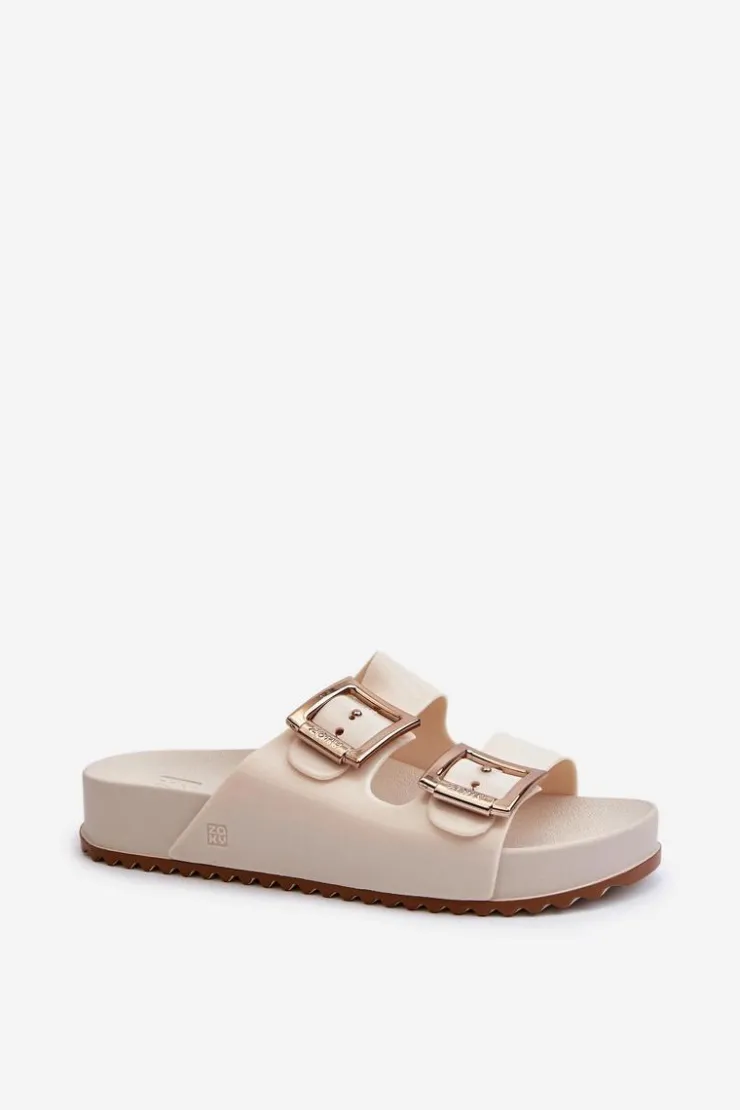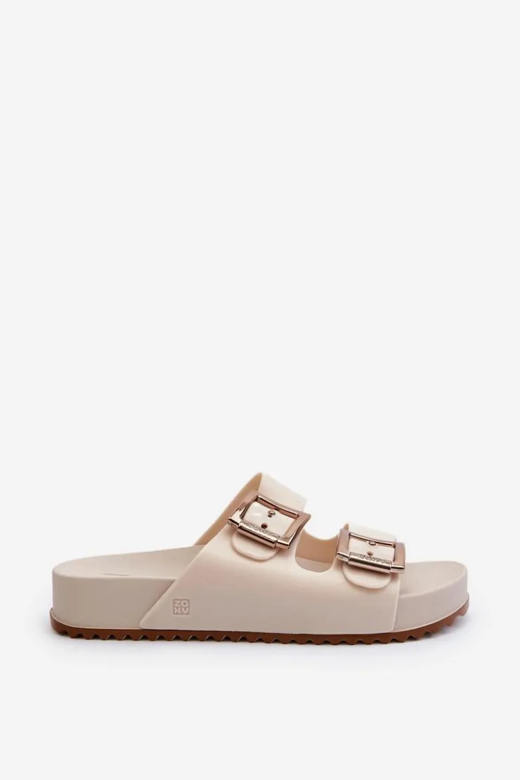 Wygodne obuwie, które zapewni Twoim stopom pełen komfort podczas letnich, ciepłych dni. Funkcjonalne klapki na płaskiej podeszwie z delikatną platformą. Modne klapki zostały wykonane z lekkiego, a przy tym wysokogatunkowego tworzywa sztucznego. Paski są regulowane, dzięki którym odpowiednio dopasujesz klapki do tęgości nogi. Buty te są wegańskie i hipoalergiczne, a dodatkowo w 100% podlegają recyklingowi. Żaden z produktów marki ZAXY nie posiada komponentów pochodzenia zwierzęcego. Pachnące gumą balonową. Przy wyborze rozmiaru prosimy kierować się tabelą rozmiarów.