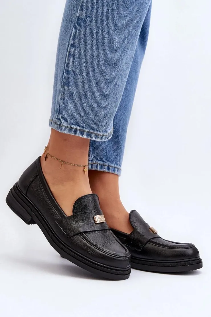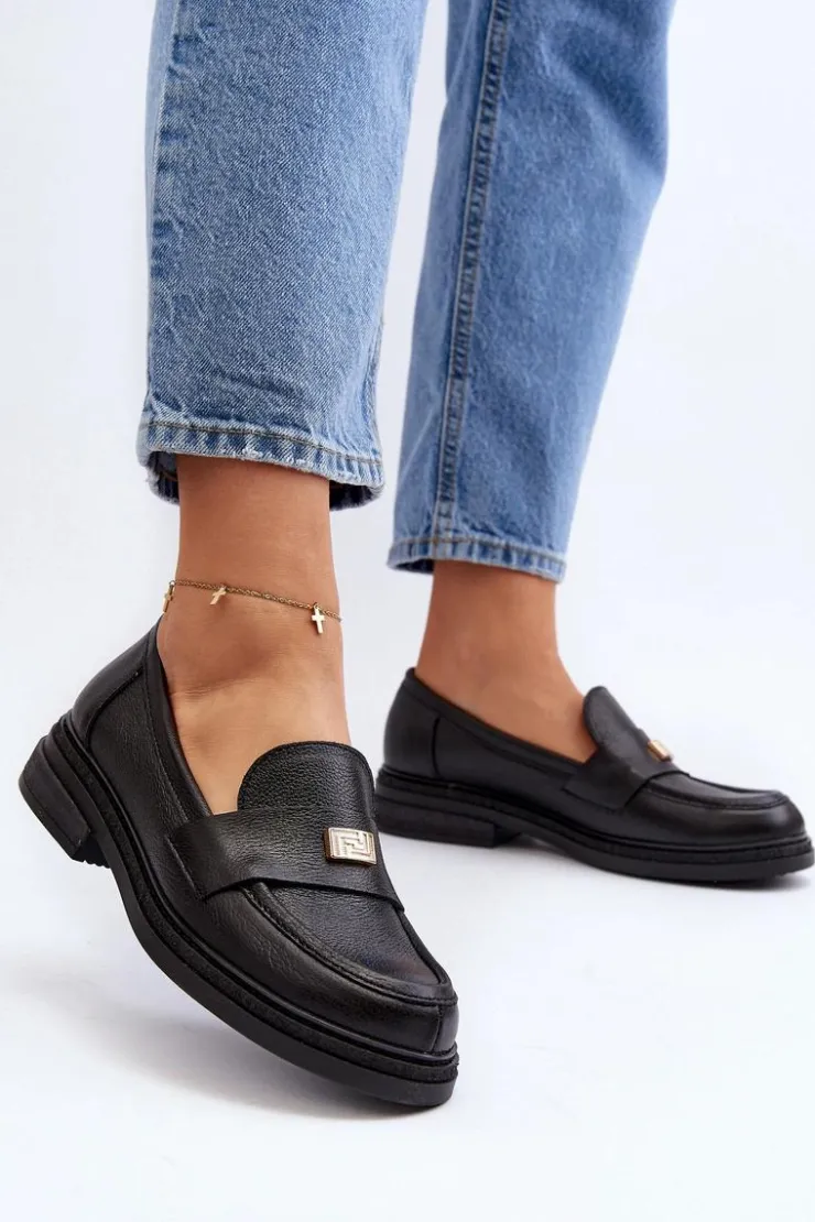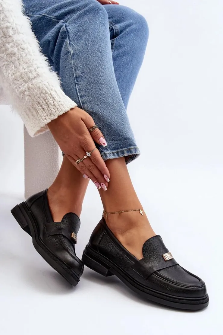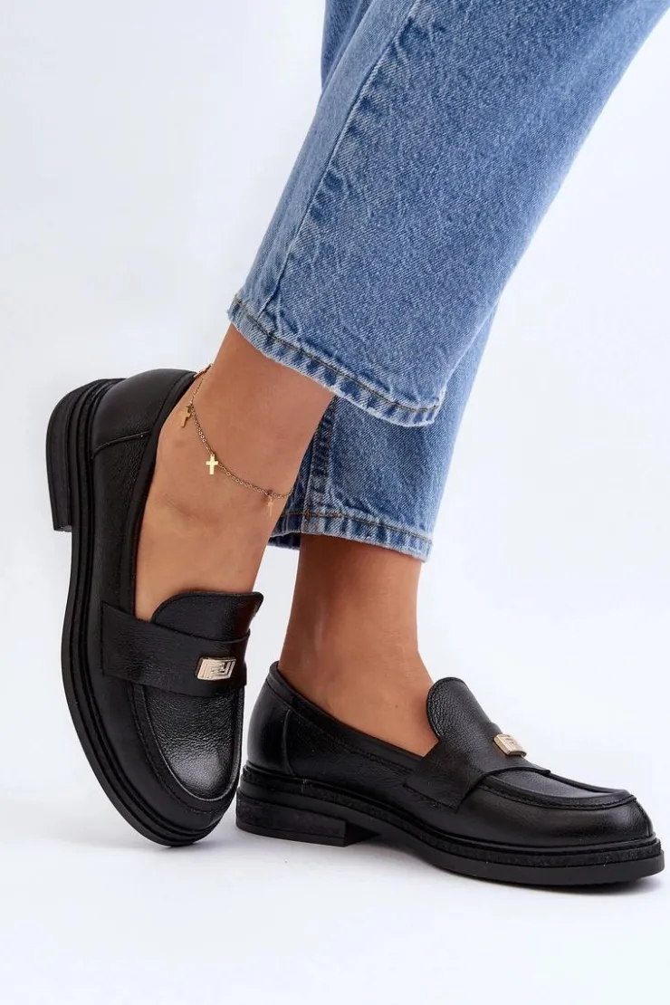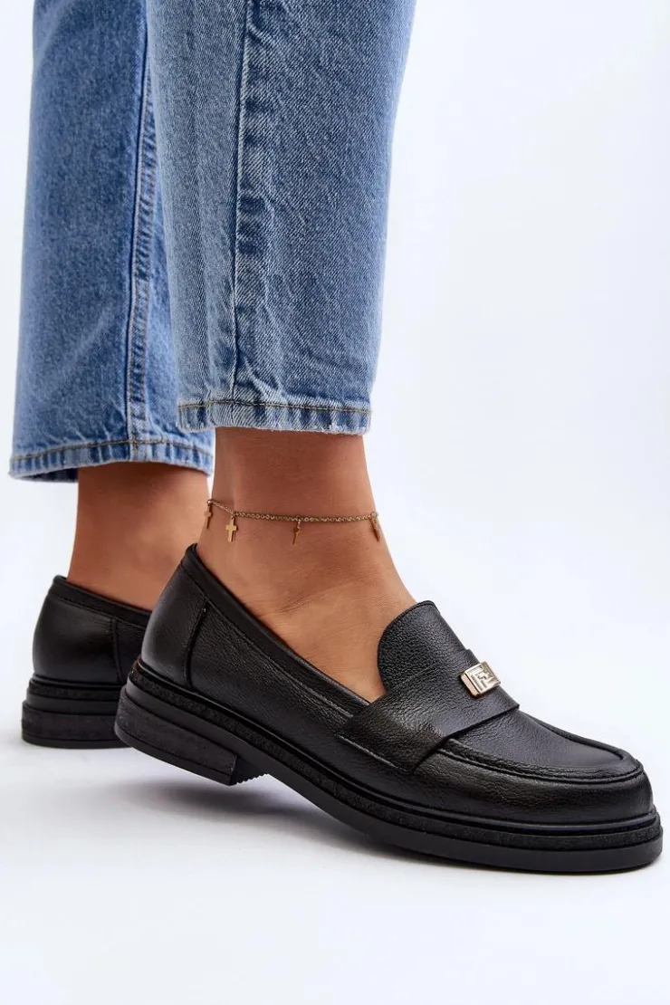 Damskie mokasyny wykonane z naturalnej skóry. Osadzone na płaskim obcasie. Noski zaokrąglone. Z przodu mała ozdoba. Skórzana wkładka zapewni wygodę podczas użytkowania. Zapiętek jest usztywniany. Ten elegancki fason z pewnością dopasujesz do wielu wiosennych stylizacji! Przy wyborze rozmiaru prosimy sugerować się tabelą rozmiarów.