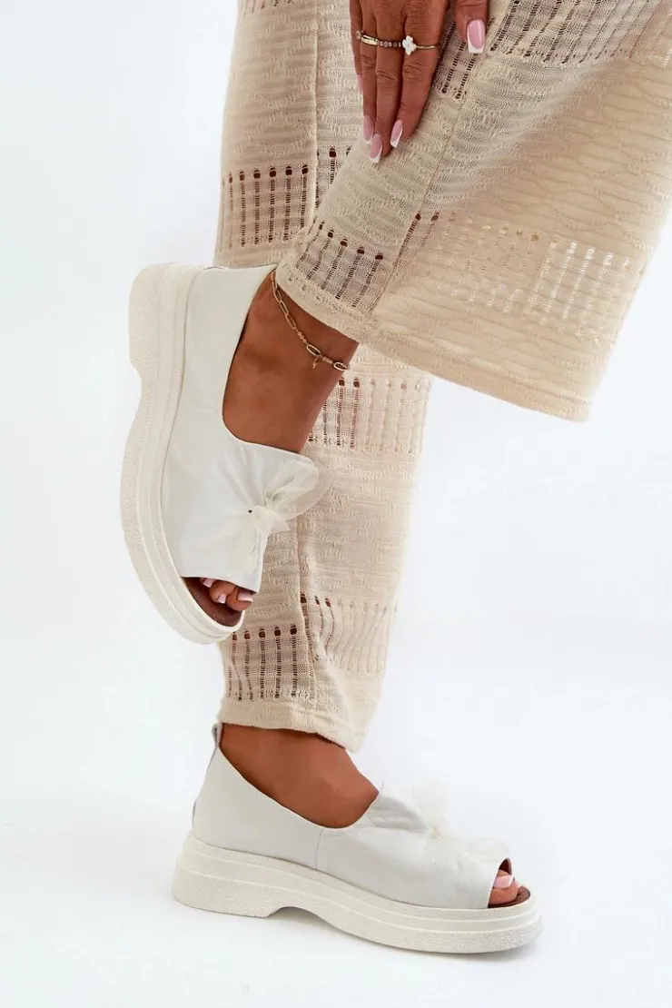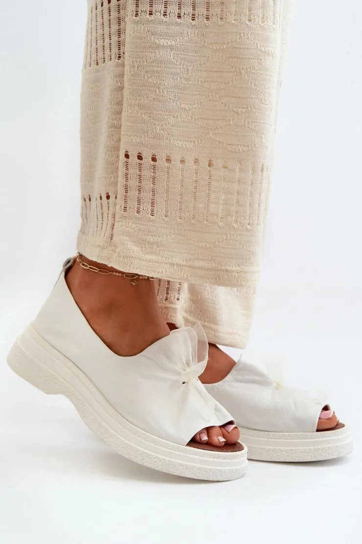 Damskie sandały wykonane ze skóry naturalnej to elegancki i komfortowy wybór na ciepłe dni. Osadzone na grubej, solidnej podeszwie, zapewniają stabilność i wygodę noszenia przez cały dzień. Miękka, skórzana wkładka dodatkowo zwiększa komfort użytkowania. Przód sandałów ozdobiony uroczą kokardką dodaje im subtelnego uroku i sprawia, że stanowią stylowy element każdej letniej stylizacji. Przy wyborze rozmiaru prosimy kierować się tabelą rozmiarów.