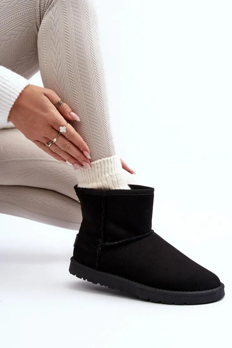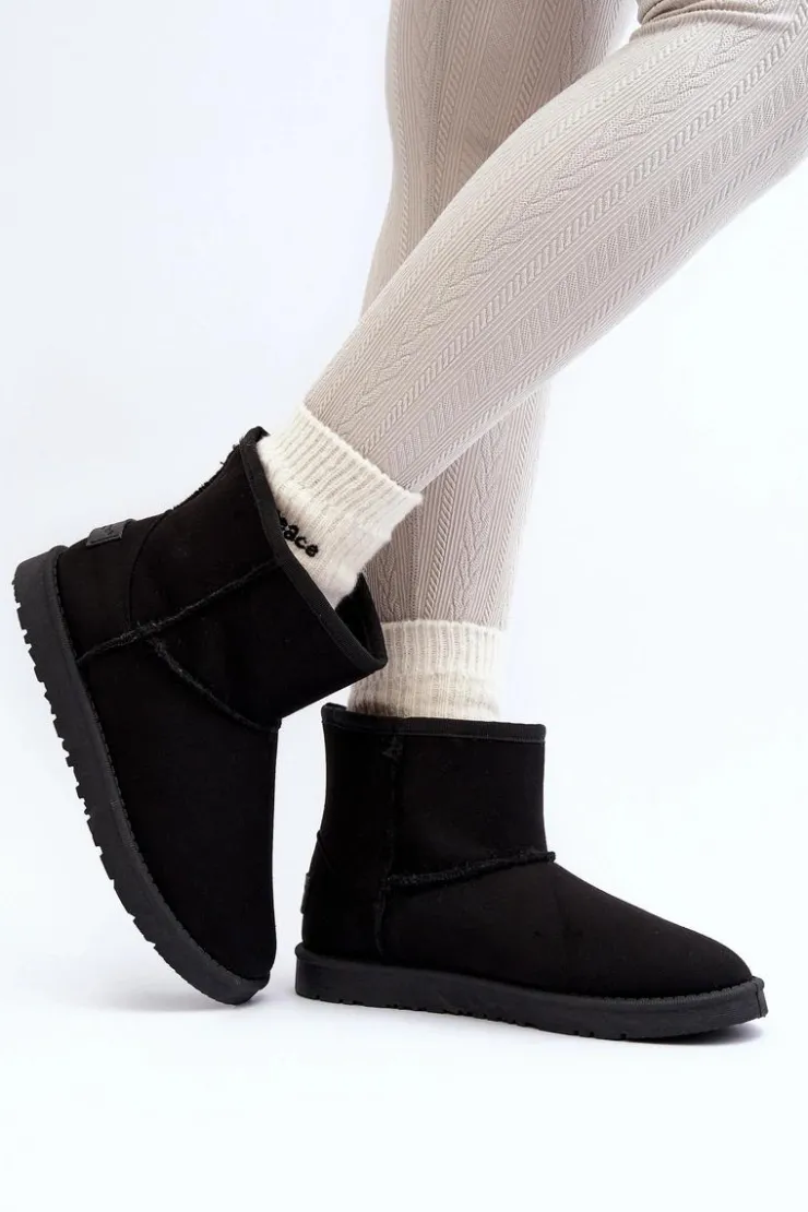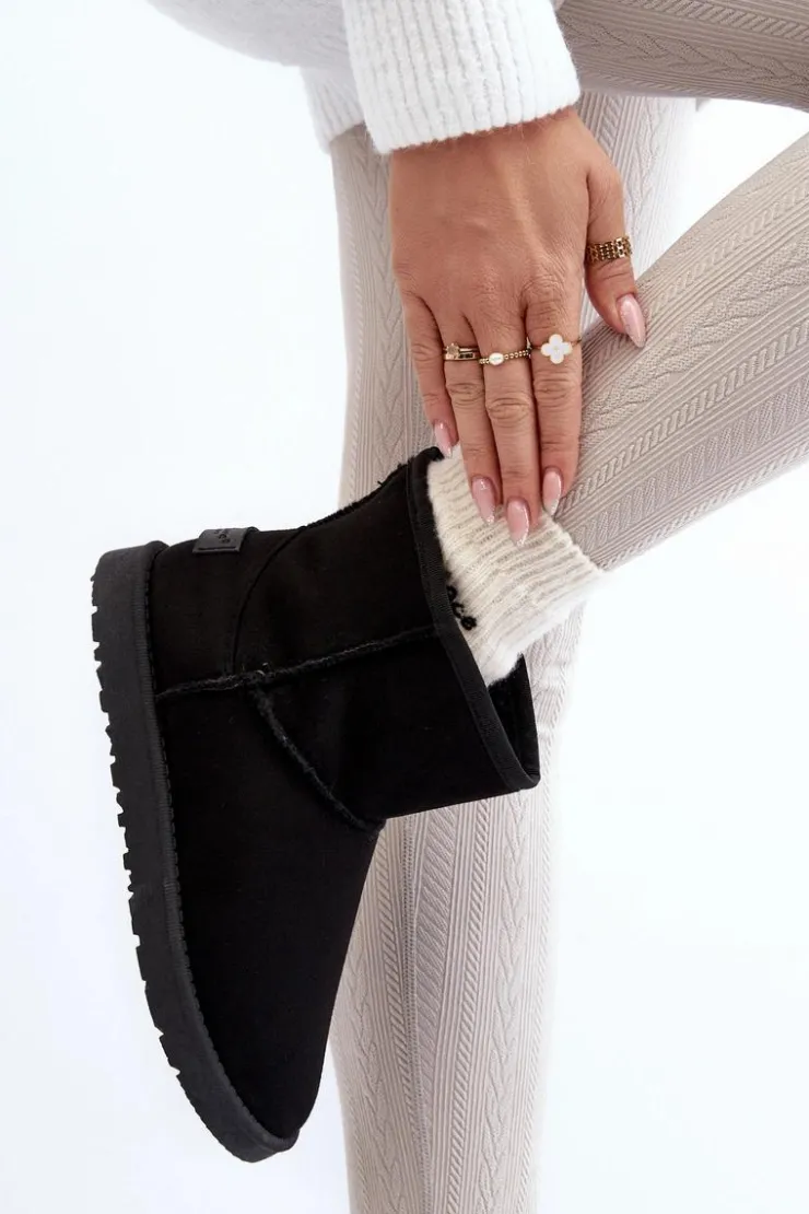 Śniegowce damskie wykonane z eko zamszu. Osadzone na trwałej podeszwie z gumowego tworzywa. Cholewka za kostkę. Ocieplenie futerkiem sprawiają, że są one idealnym wyborem na zimowe dni, chroniąc przed zimnem. Modny fason tego obuwia pozwala zestawić je z różnorodnymi stylizacjami. Koniecznie powinnaś je mieć! Przy wyborze rozmiaru prosimy sugerować się tabelą rozmiarów.