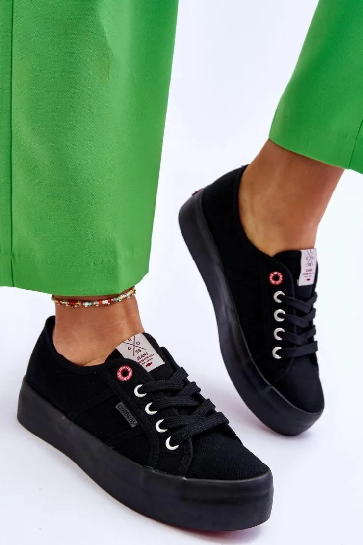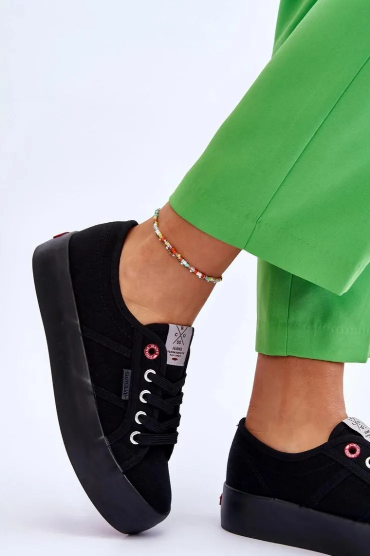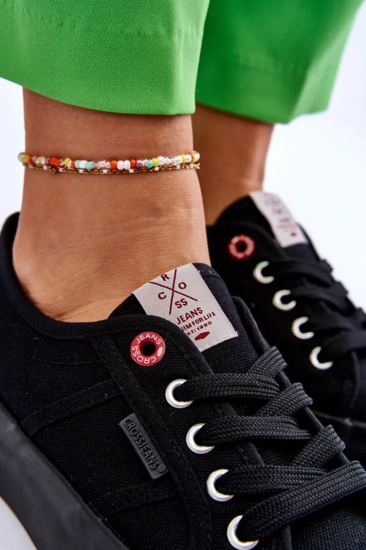 Damskie tenisówki na platformie CROSS JEANS. Buty dobrze dopasowują się do kształtu stopy, posiadają miękką, materiałową wkładkę oraz antypoślizgową podeszwę wykonaną z gumowego tworzywa. Dodatkowo trampki te posiadają usztywniany zapiętek. Koniecznie sprawdź całą naszą kolekcję butów marki CROSS JEANS! Przy wyborze rozmiaru prosimy sugerować się tabelą rozmiarów.