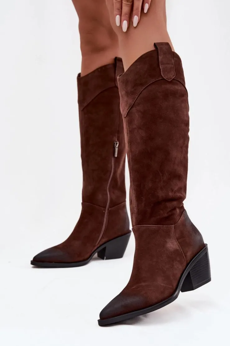 Kozaki damskie w stylu kowbojek od marki Artiker to propozycja dla kobiet, które cenią modny wygląd połączony z wygodą. Wykonane z naturalnego zamszu, prezentują się elegancko i ponadczasowo, a szpiczaste noski podkreślają ich kobiecy charakter oraz dodają sylwetce smukłości. Model wsuwany, dodatkowo posiada zamek, co gwarantuje łatwe zakładanie i zdejmowanie butów. Stabilny obcas w formie ściętego słupka zapewnia wygodę podczas noszenia, jednocześnie nawiązując do klasycznego kowbojskiego stylu. Wnętrze ocieplone miękkim materiałem sprawia, że kozaki świetnie sprawdzą się w chłodniejsze dni. To efektowny model, który doskonale uzupełni zarówno casualowe stylizacje z jeansami, jak i bardziej kobiece zestawy z sukienką czy spódnicą. Przy wyborze rozmiaru prosimy sugerować się tabelą rozmiarów.