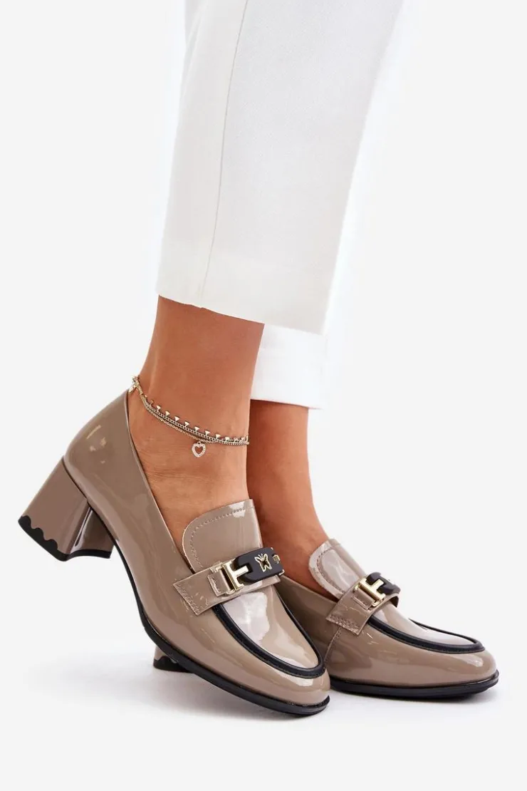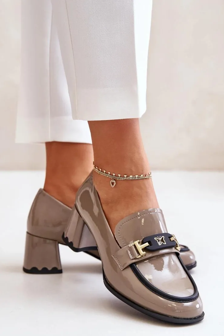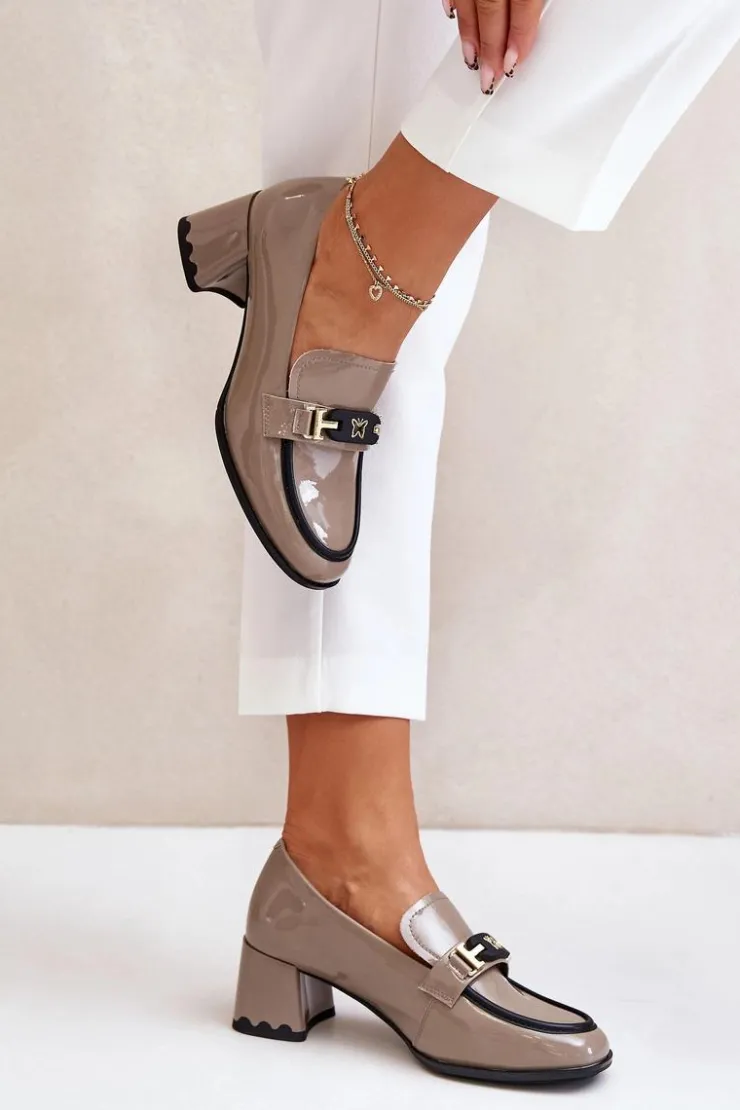 Damskie półbuty wykonane z naturalnej skóry. Osadzone na obcasie w formie klocka. Noski zaokrąglone. Głównym atutem tego modelu jest ozdoba na pasku, która nadaje wyjątkowego uroku. Miękka wkładka zapewni wygodę na każdym kroku. Idealne na co dzień, jak i na bardziej formalne okazje. Przy wyborze rozmiaru prosimy sugerować się tabelą rozmiarów.