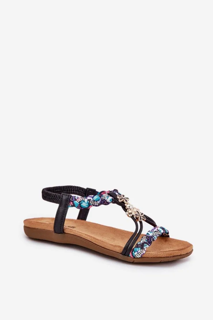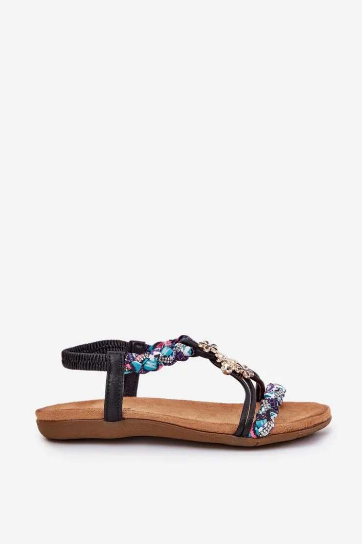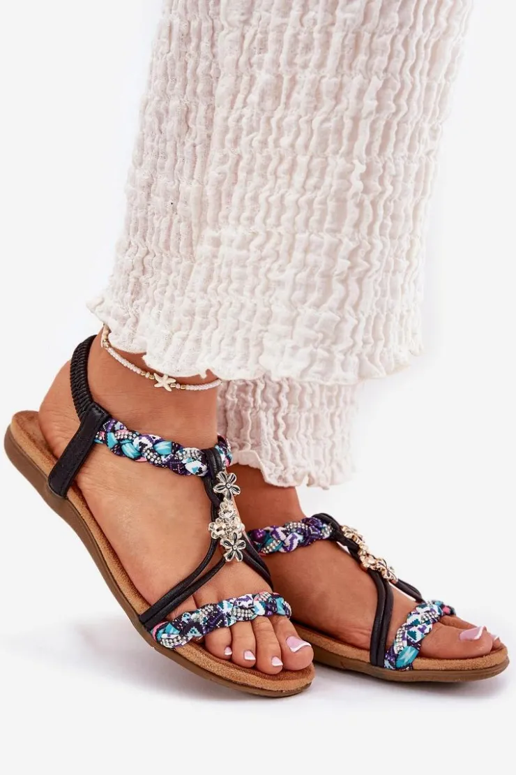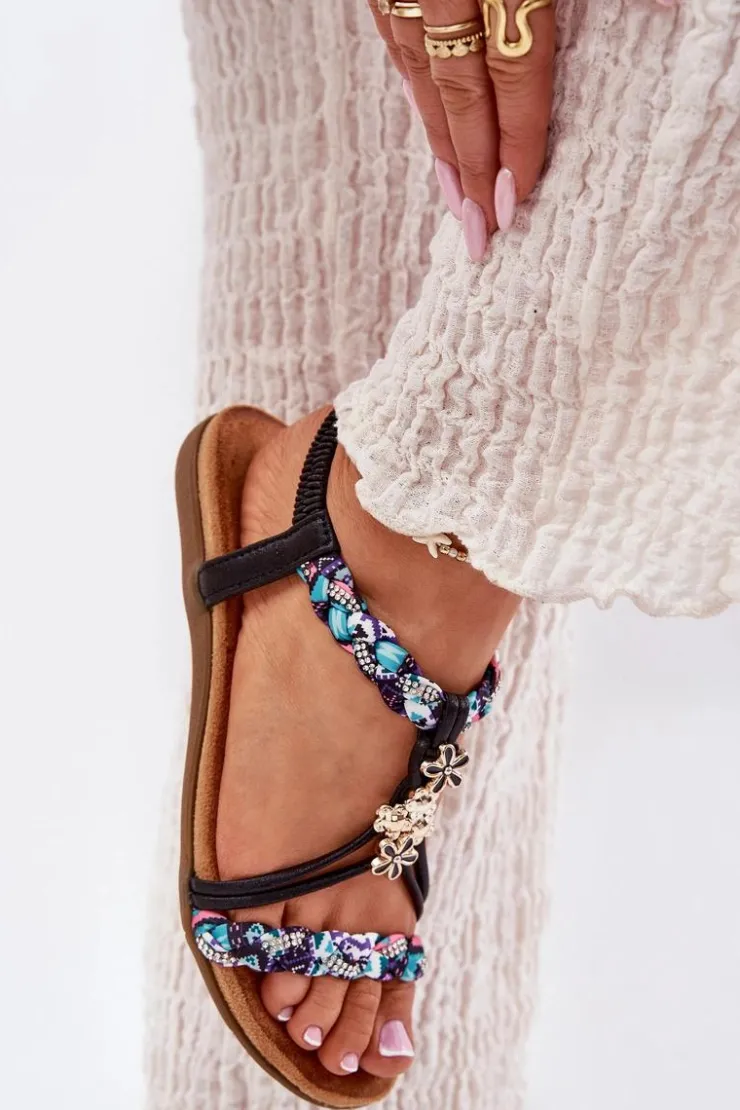 Damskie sandały wykonane z materiału tekstylnego to doskonały wybór na ciepłe dni. Model ten wyróżnia się plecionymi paskami, subtelnymi przypinkami oraz błyszczącymi cyrkoniami, które dodają wyjątkowego uroku. Płaska podeszwa i miękka wkładka zapewniają komfort przez cały dzień. Sandały te doskonale komponują się z letnimi stylizacjami, nadając im lekkości i modnego akcentu. Idealne na codzienne wyjścia! Przy wyborze rozmiaru prosimy sugerować się tabelą rozmiarów.