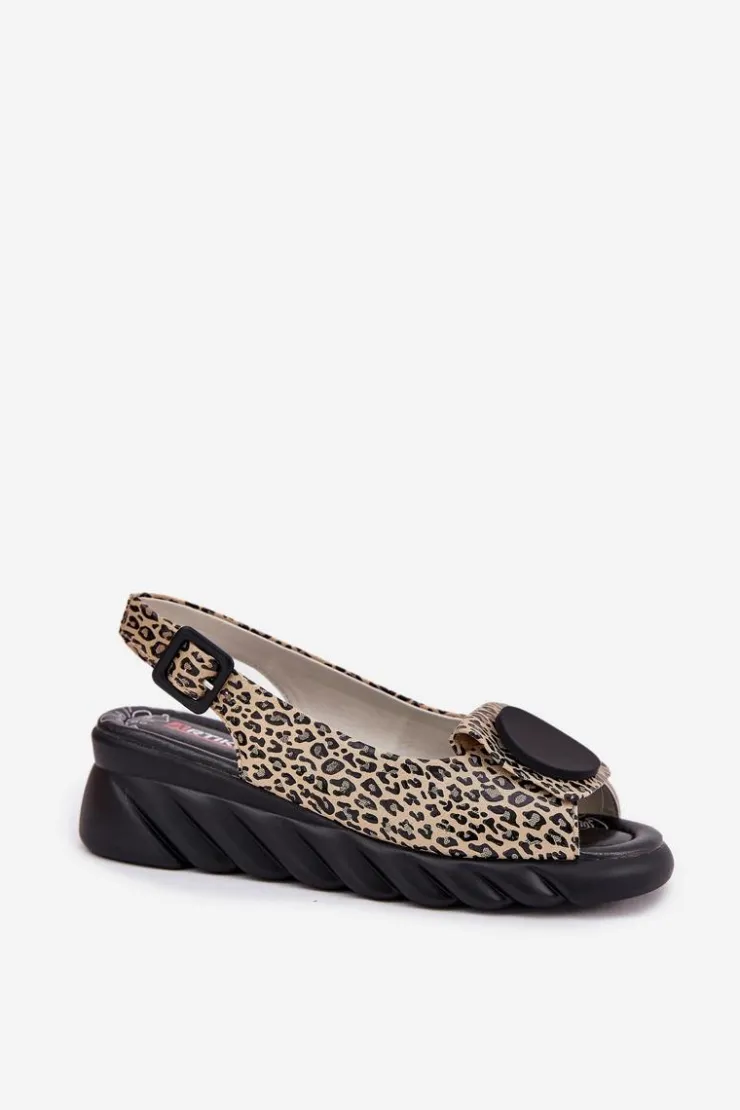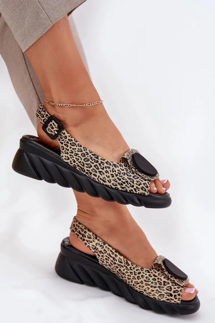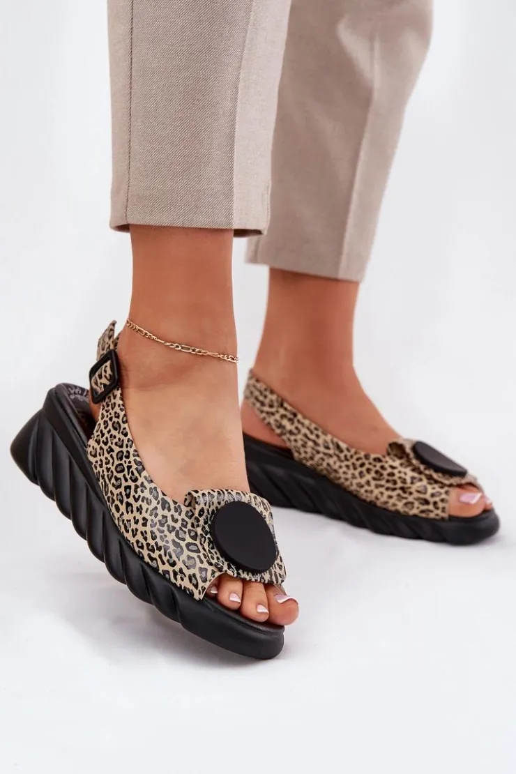 Eleganckie i stylowe sandały z naturalnej skóry to doskonały wybór na letnie dni. Osadzone na koturnie, zapewniają komfort i stabilność przez cały dzień. Z przodu znajduje się nowoczesna, geometryczna ozdoba, która dodaje im wyjątkowego charakteru. Zapinane na klamrę z regulowanym paskiem, pozwalają na idealne dopasowanie do stopy. Skórzana wkładka gwarantuje wygodę, czyniąc te sandały idealnym wyborem do letnich stylizacji. Przy wyborze rozmiaru prosimy sugerować się tabelą rozmiarów.