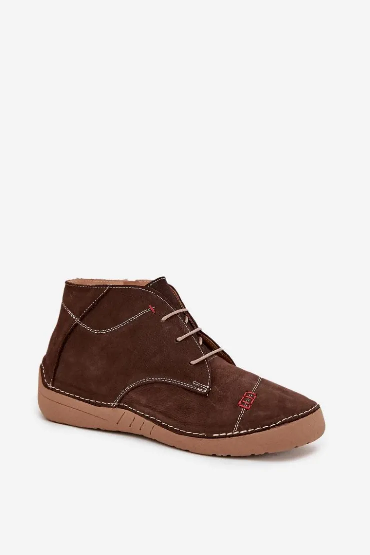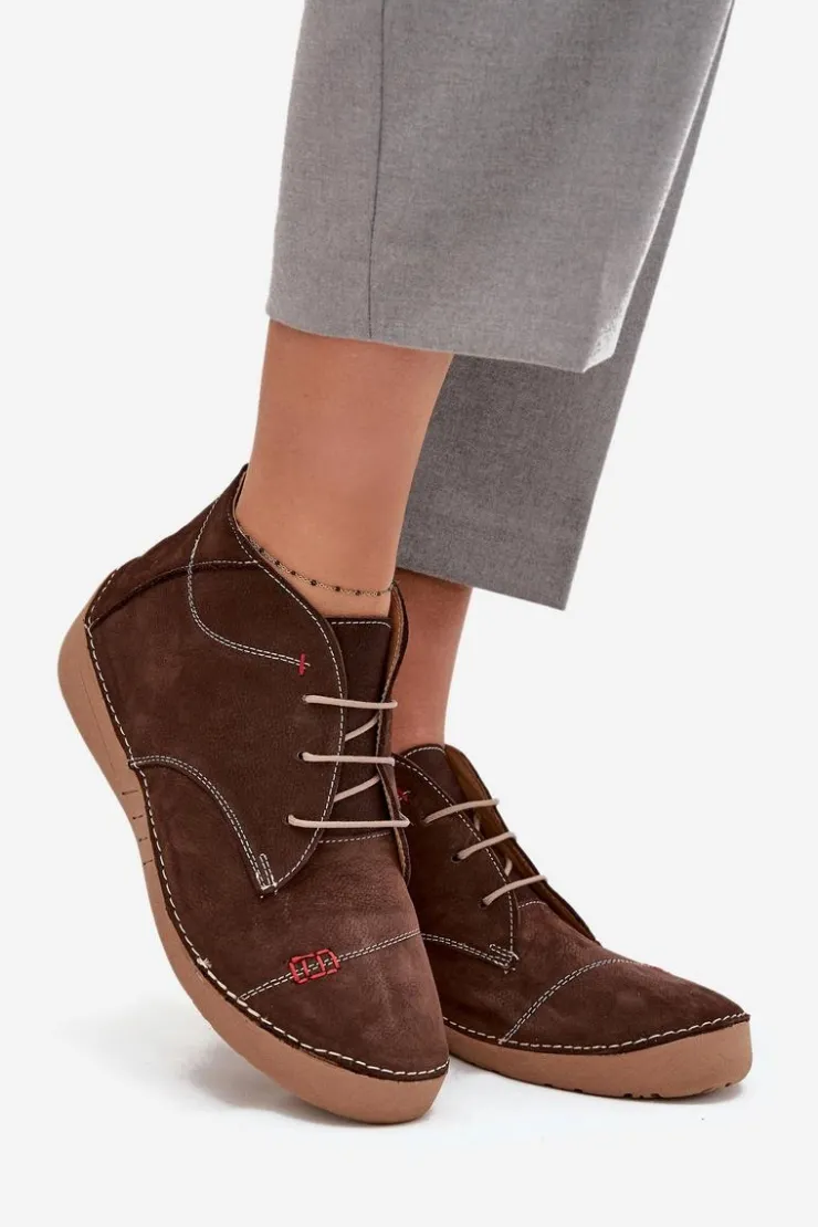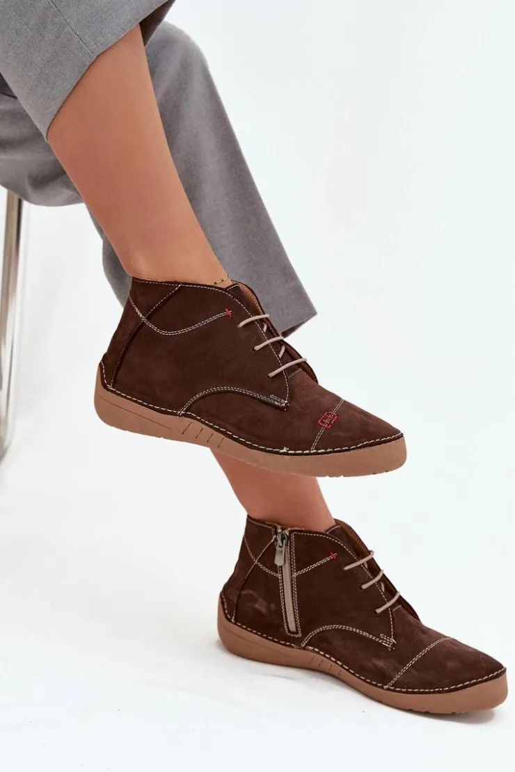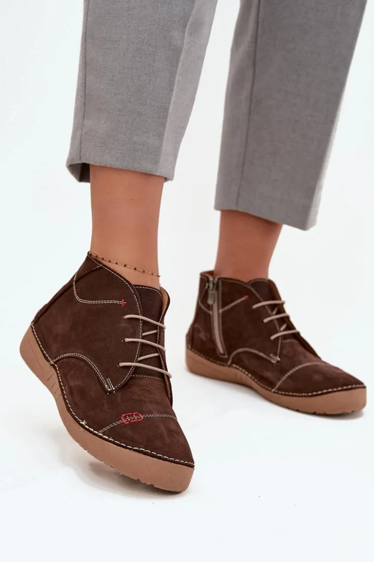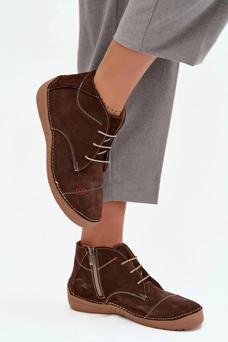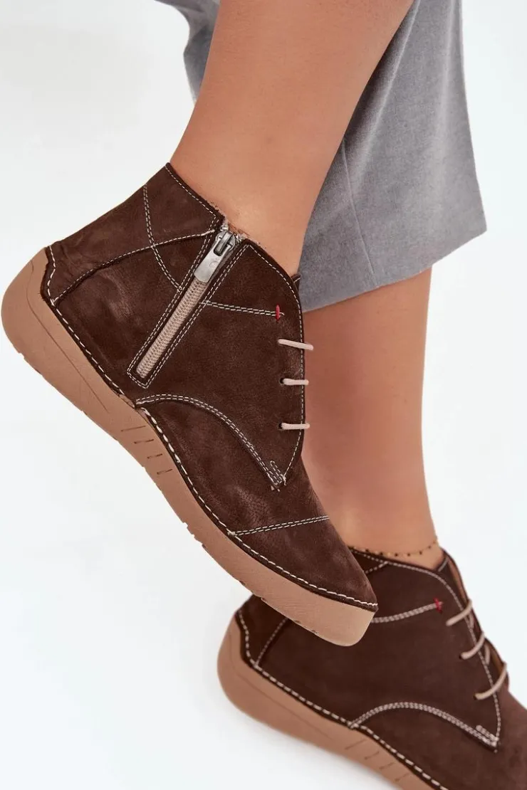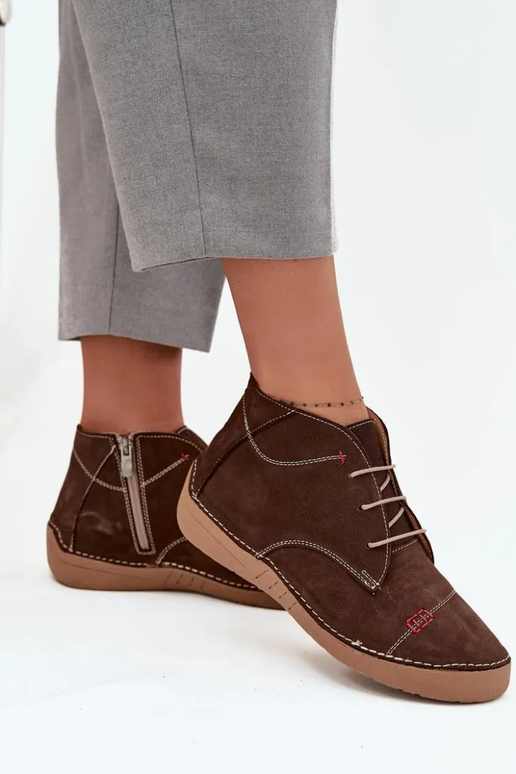 Damskie Artiker Skórzane Półbuty Damskie Z Przeszyciami Na Zamek 57C2117 Brązowe