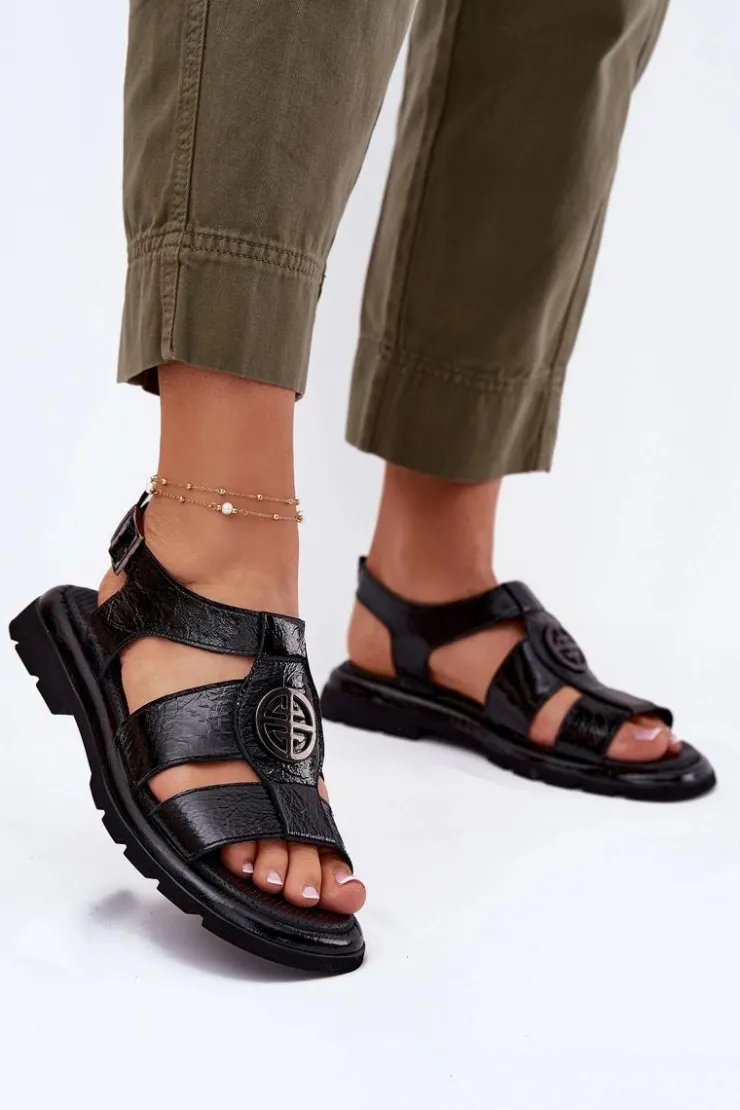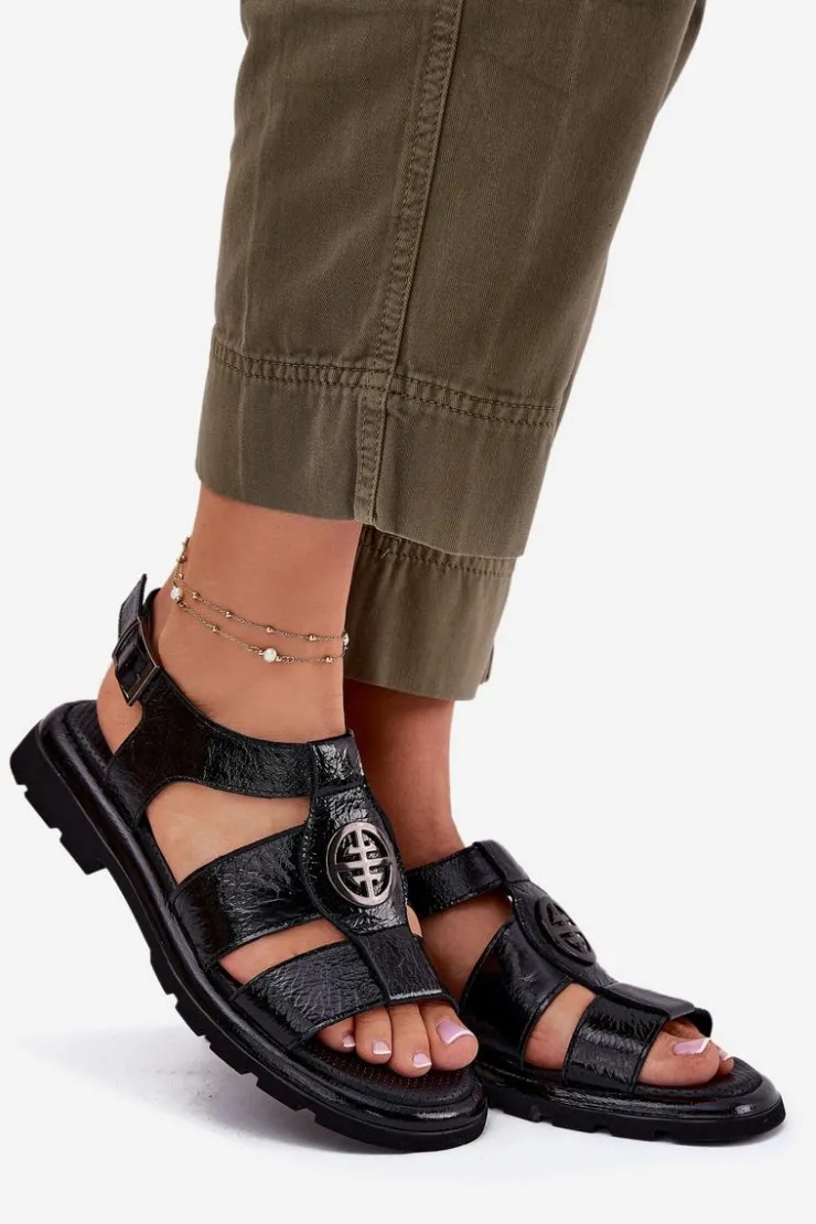 Sandały damskie z naturalnej skóry to połączenie stylu i elegancji, które idealnie sprawdzi się w letnich stylizacjach. Model wyróżnia się subtelnym ozdobnym detalem z przodu, który dodaje im wyjątkowego charakteru. Sandały zapinane są na klamrę z regulowanym paskiem, co zapewnia komfort i doskonałe dopasowanie do stopy. To idealna propozycja dla kobiet szukających zarówno klasycznego, jak i modnego obuwia na ciepłe dni. Przy wyborze rozmiaru prosimy sugerować się tabelą rozmiarów.