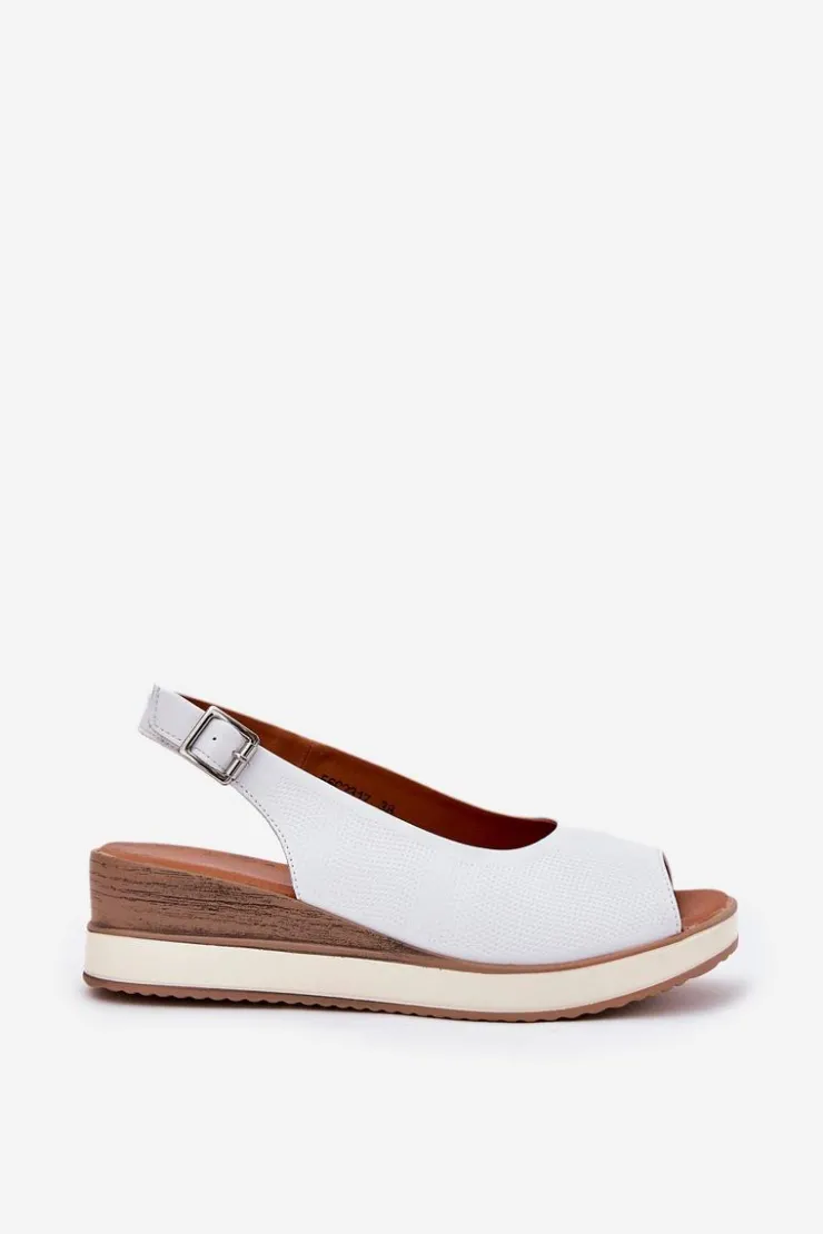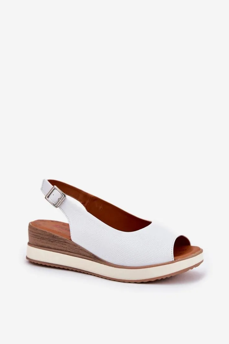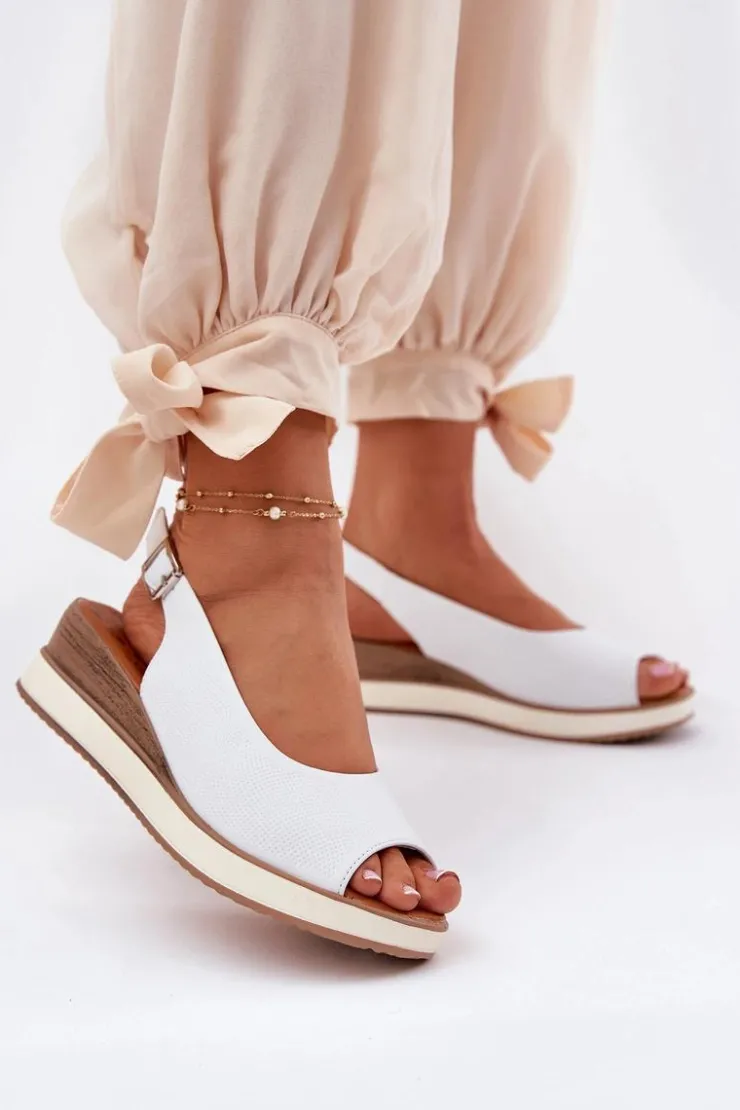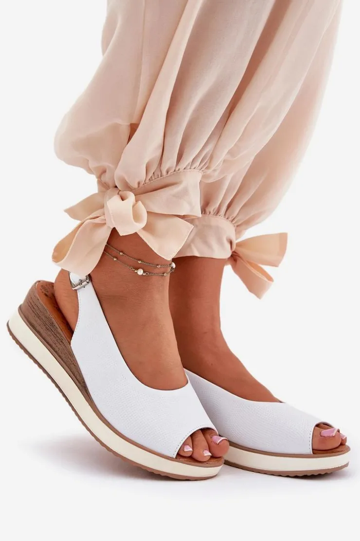 Damskie Artiker Skórzane Sandały Na Koturnie 56C2317 Białe