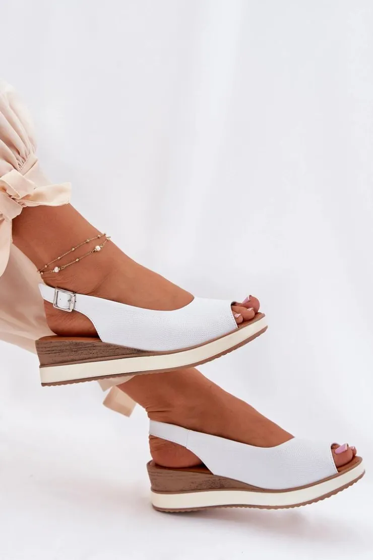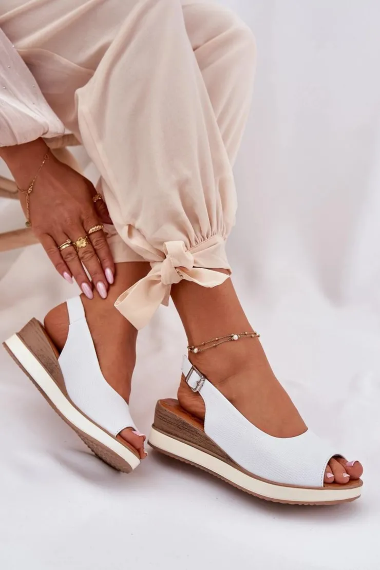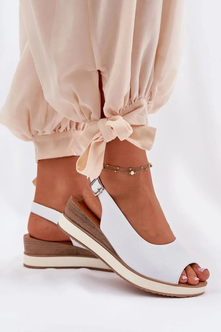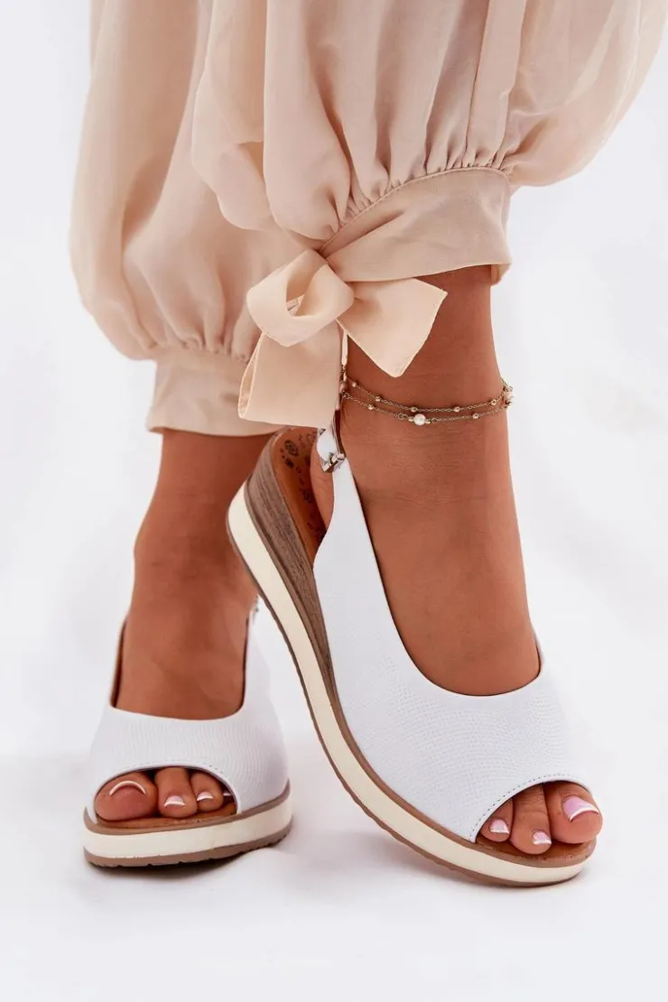 Damskie Artiker Skórzane Sandały Na Koturnie 56C2317 Białe