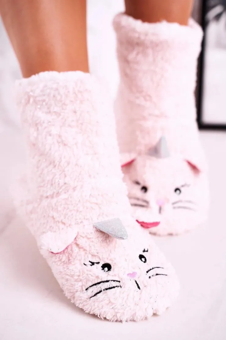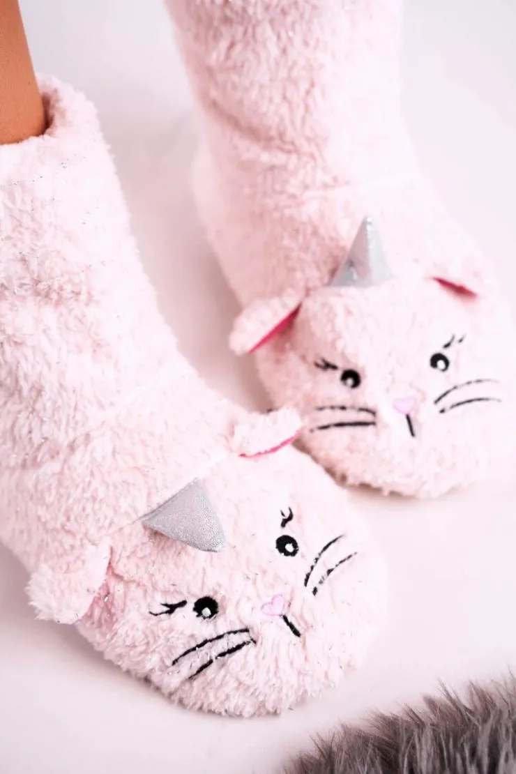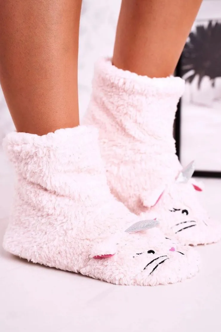 Damskie Aura.via Damskie Papcie Ocieplane Kożuszkiem Jasny Róż Nyan Cat